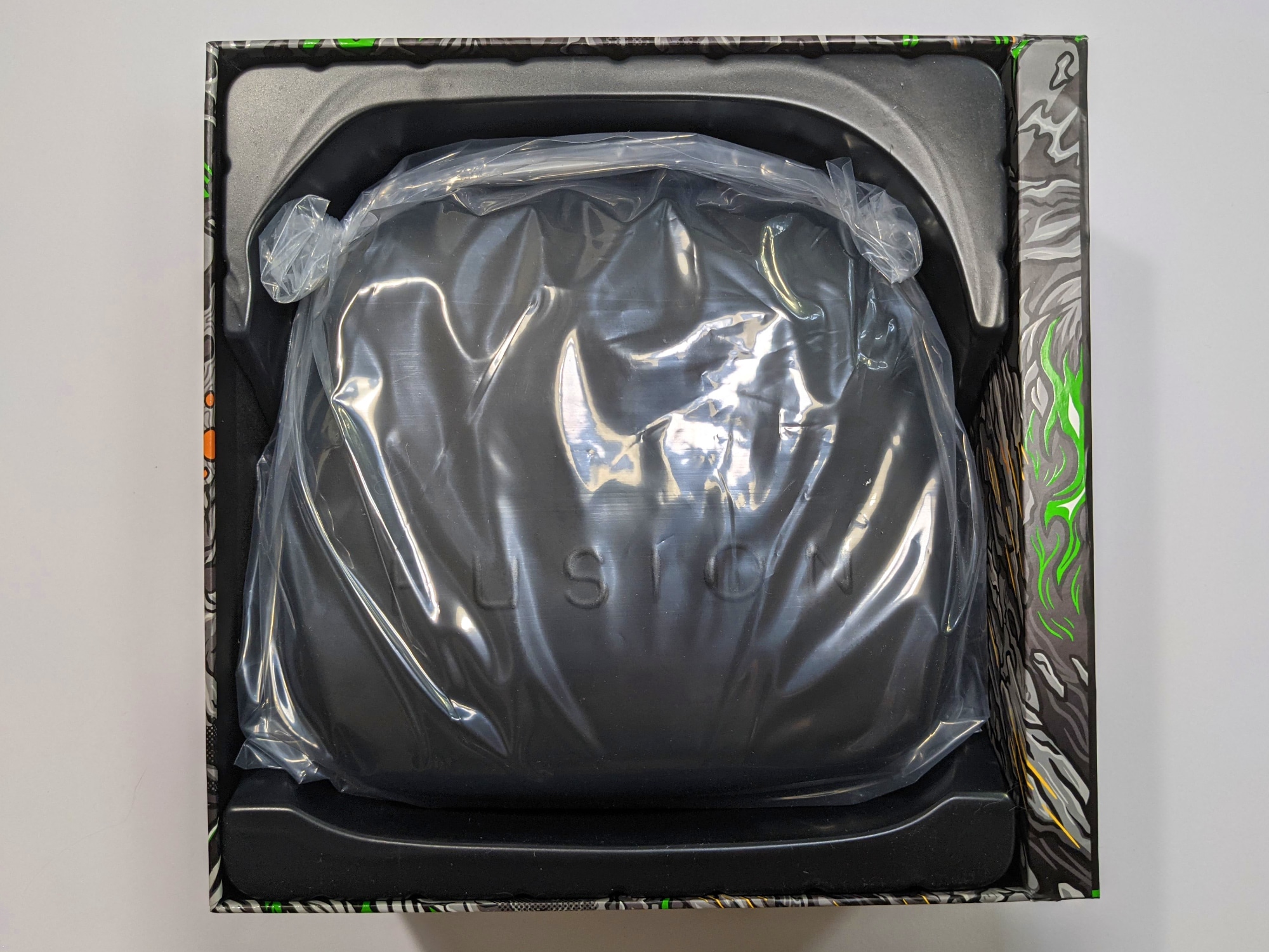 Der Controller kommt in einem auffällig gestaltetem Karton. In diesem befindet sich eine schwarze Tasche, in der Controller und Zubehör verstaut sind. Neben dem Controller selbst finden wir dort eine weiße Front, als Alternative zur schwarzen, zwei Sticks, ein USB-C-Kabel und eine kleine schwarze Abdeckung. Diese wird benötigt, wenn man das frei belegbare Pro Pack nicht nutzen möchte. Der Lieferumfang ist umfangreich und sollte kaum Wünsche offen lassen.