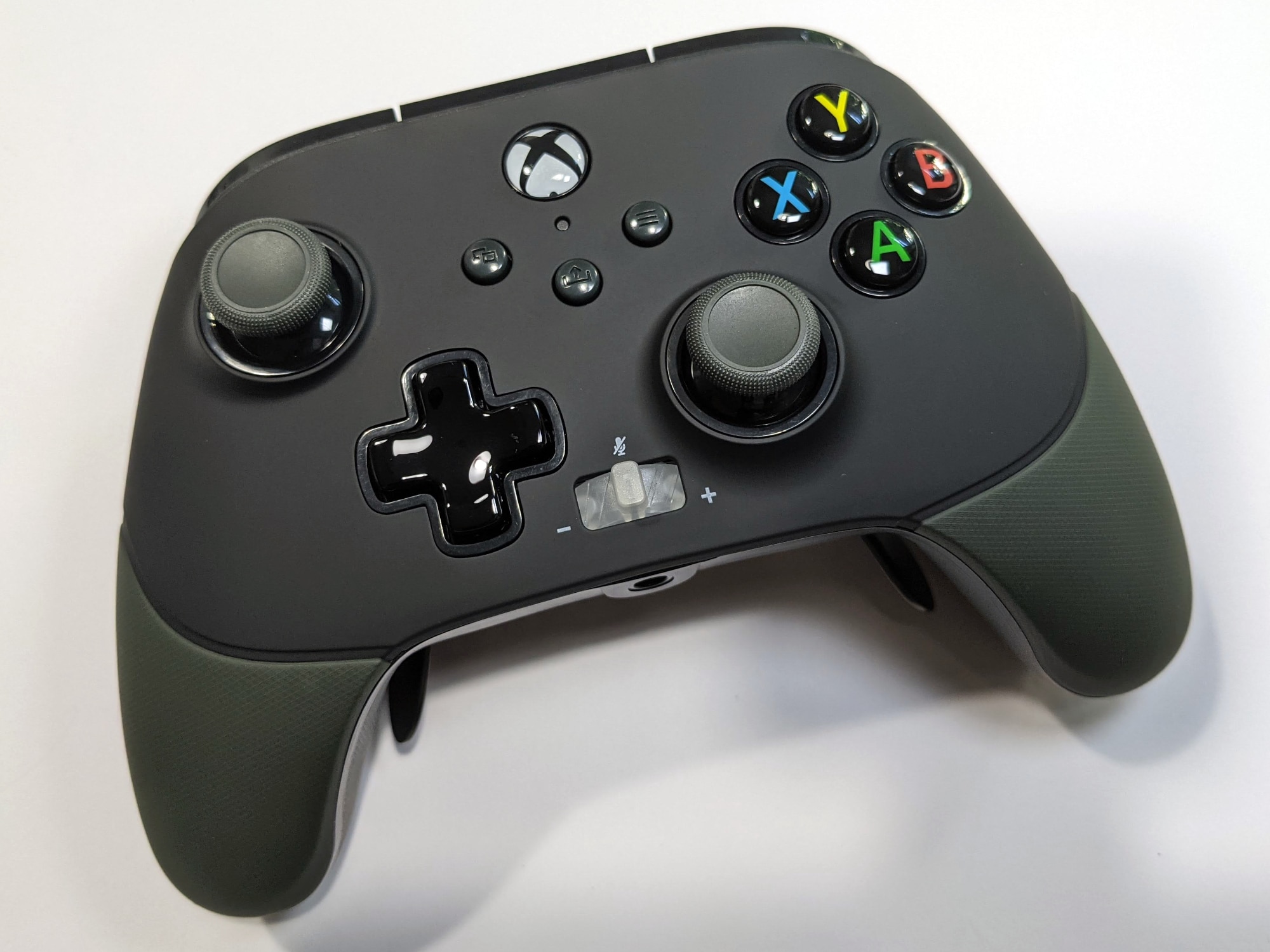 Die Oberseite des Controllers ist minimal strukturiert und dadurch sehr griffig. An den Unterseiten der Griffe und den Triggern setzt man zudem auf eine Gummierung mit Struktur, durch die der Controller jederzeit sicher in der Hand liegt. Druckpunkt des Steuerkreuzes und der Buttons gefallen uns im Test sehr gut, zudem überzeugen uns auch die Trigger. Während wir beim PowerA Xbox Series X|S Enhanced Wired Controller hier nicht ganz zufrieden waren, gibt es beim FUSION Pro 2 nichts auzusetzen. Nichts am Controller klappert oder knarzt, die Qualität ist durchweg sehr hoch.