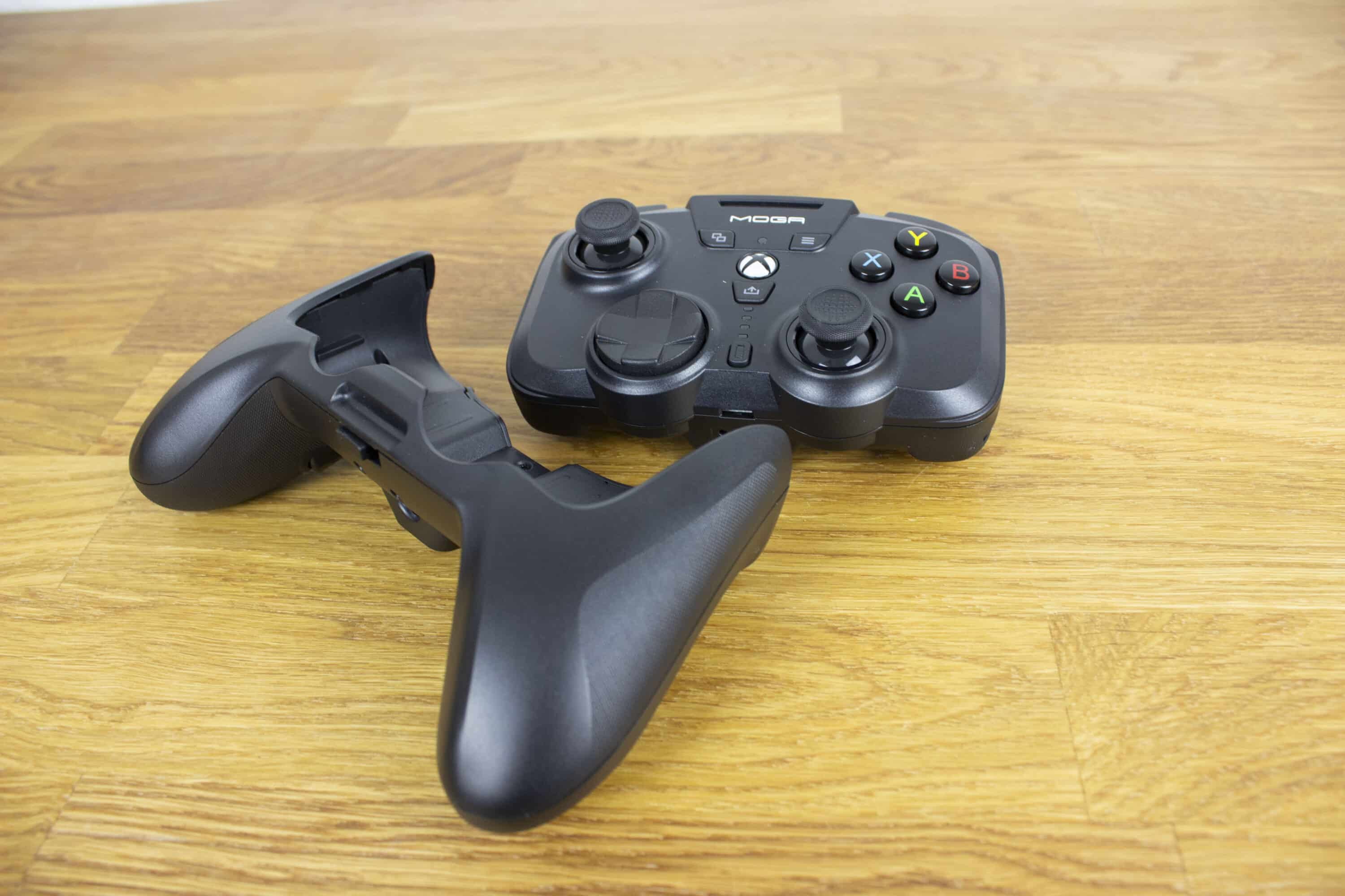 Dass es sich um einen Xbox-Controller handelt, ist direkt erkennbar. Zum Einen liegt dies an der Form, auch wenn die Abmessungen etwas größer sind. Zum Anderen ist mittig das Xbox-Logo gesetzt und die Buttons sind entsprechend beschriftet. Durch die abnehmbaren Griffe wirkt das Design aber sehr kantig. Die Standard-Controller sowie die andere Hersteller wirken hingegen einfacher und moderner. Selbstverständlich ist dies der Modularität zuzuschreiben, Kompromisse sind manchmal eben einzugehen.