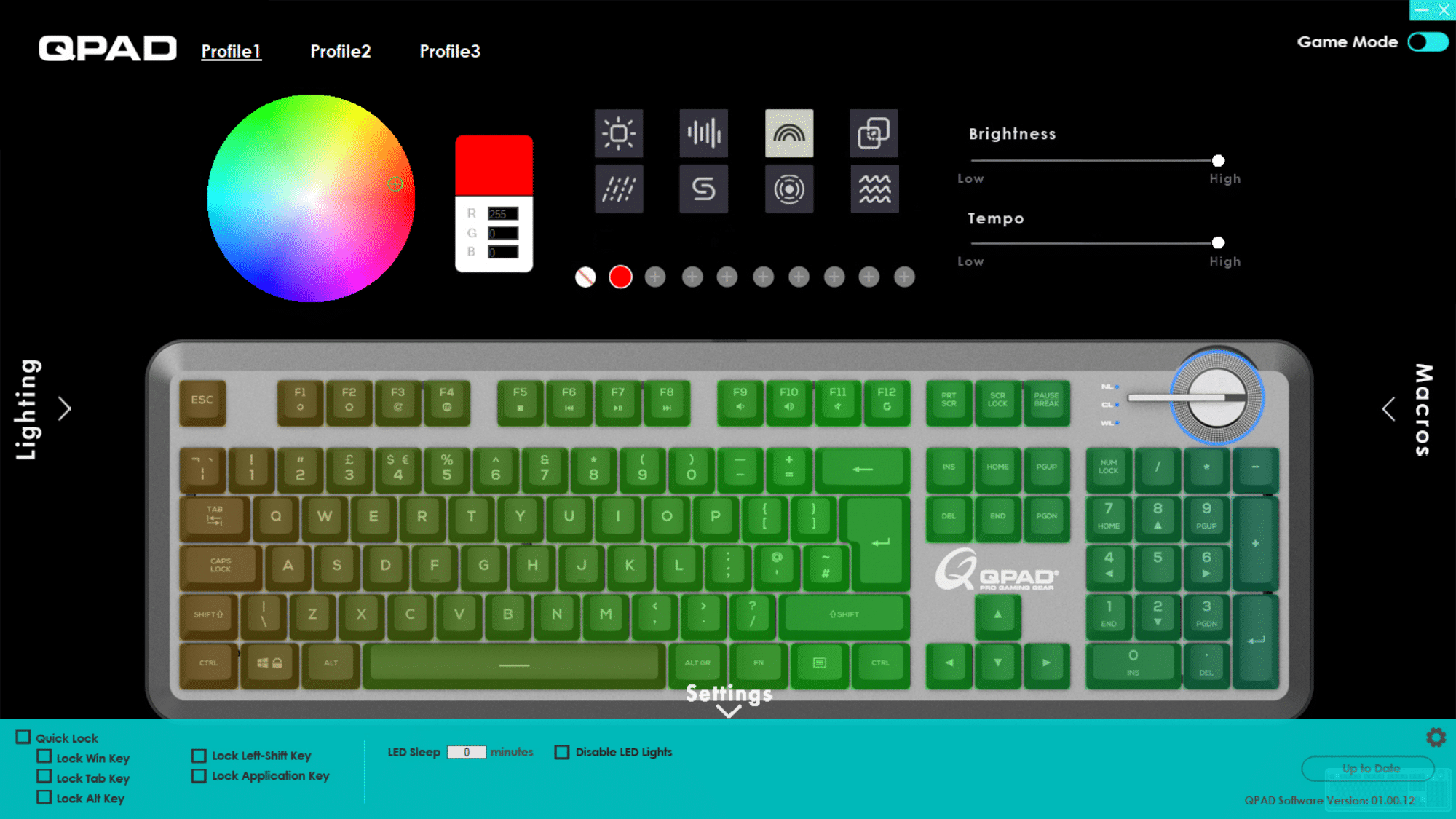 Wir haben die RGB in dieser Review nicht separat erwähnt, da sie nichts Besonderes darstellt. Wie bei jeder anderen Gaming-Tastatur sollte sie zu erwarten und auch pro Tastenschalter ansteuerbar sein. QPAD macht da keine Ausnahme und liefert dazu passenderweise eine Konfigurationssoftware mit dem originellen Namen Qontrol.