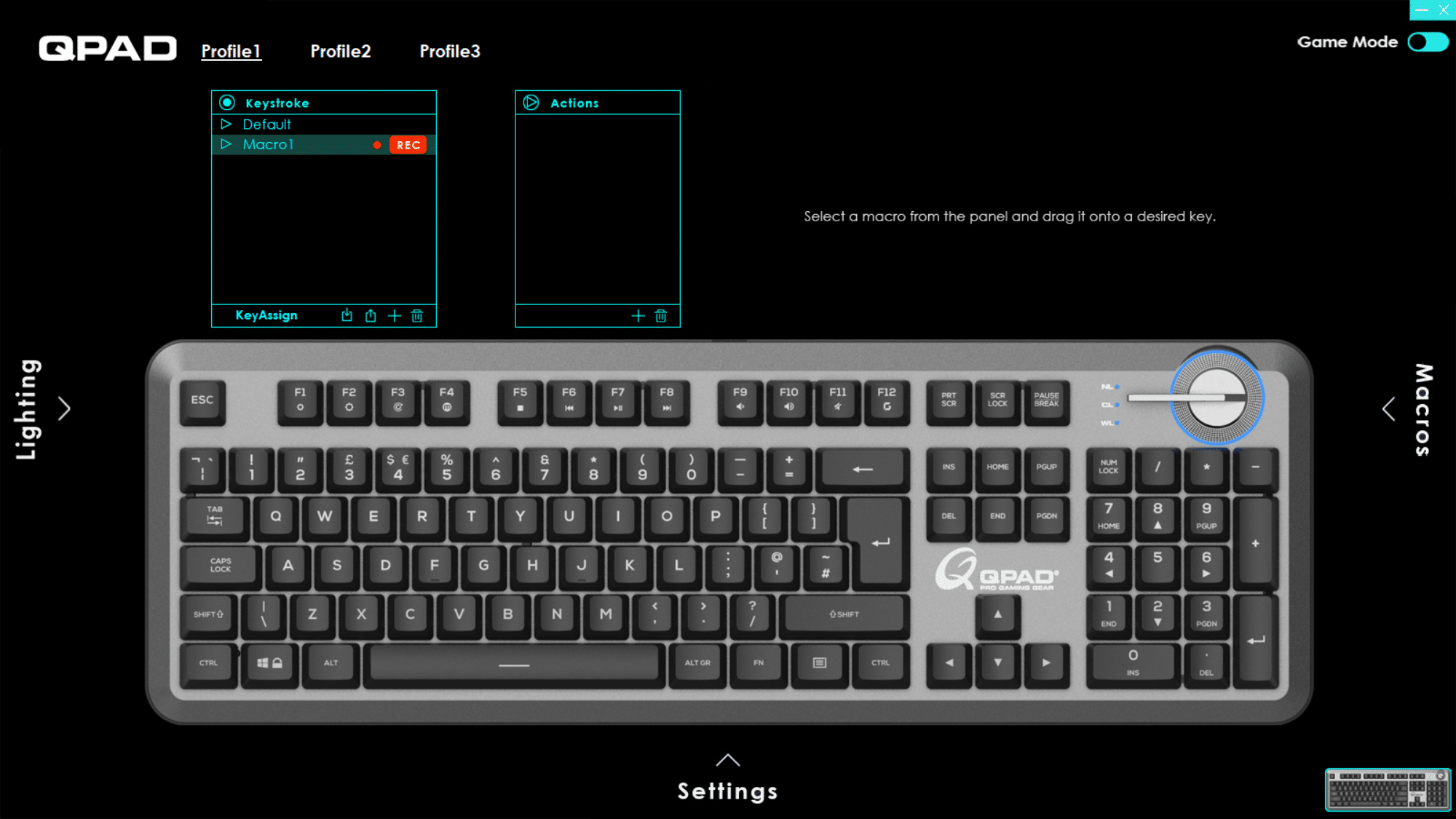 Unter Settings lässt sich festlegen, welche Tasten im Game-Mode gesperrt werden sollen, wie beispielsweise die Windows-Taste, damit man ungestört zocken kann.