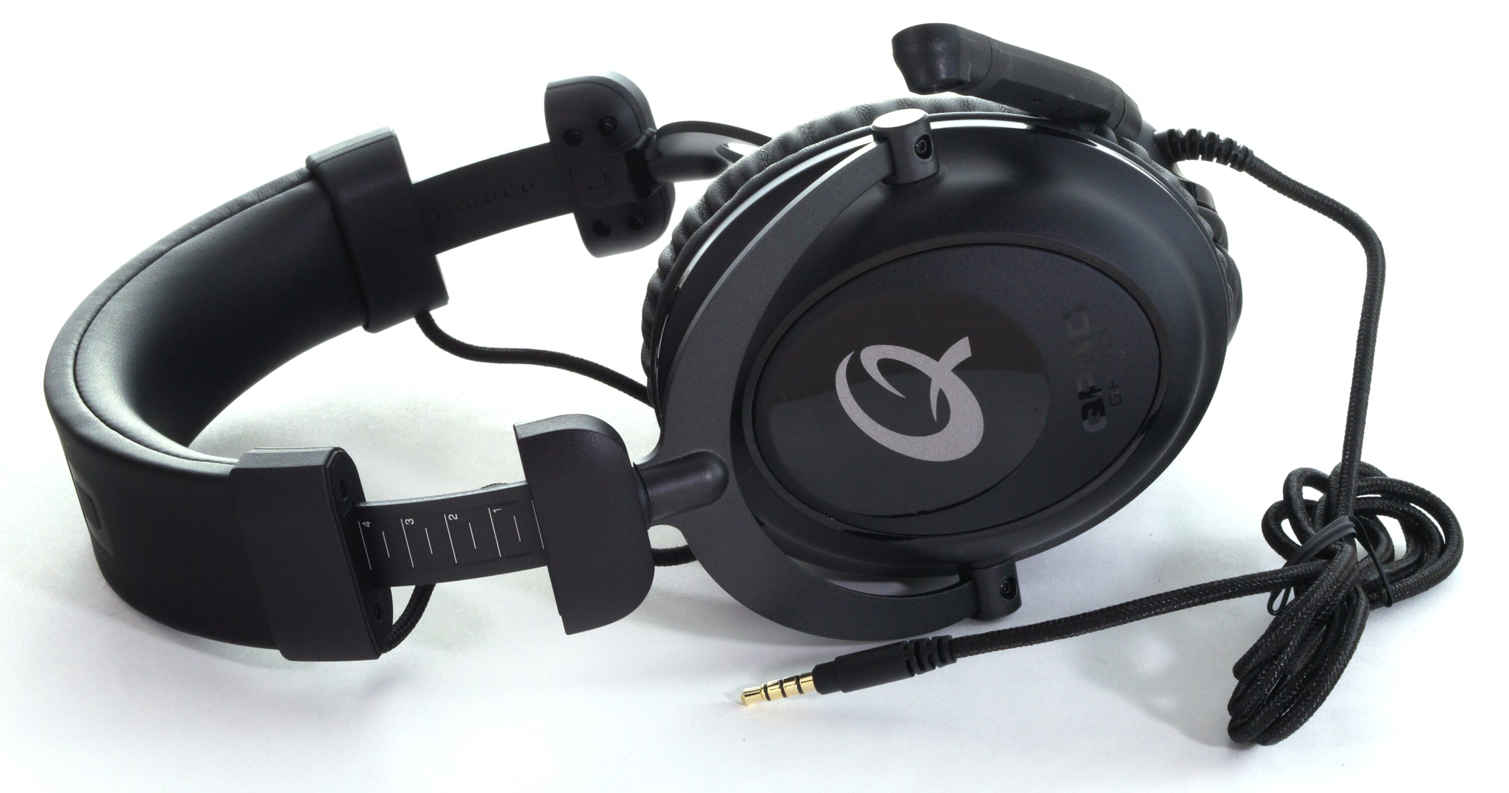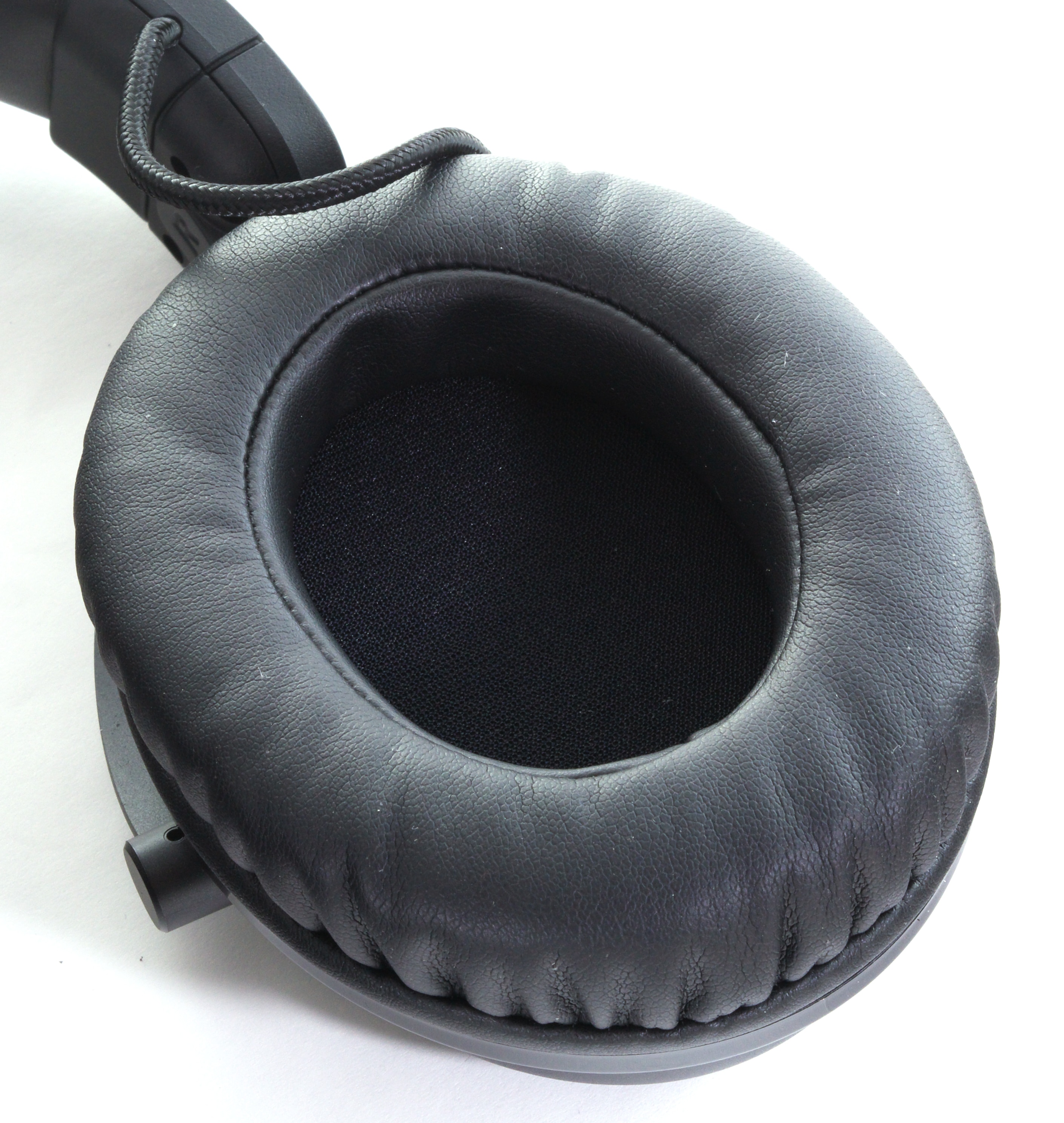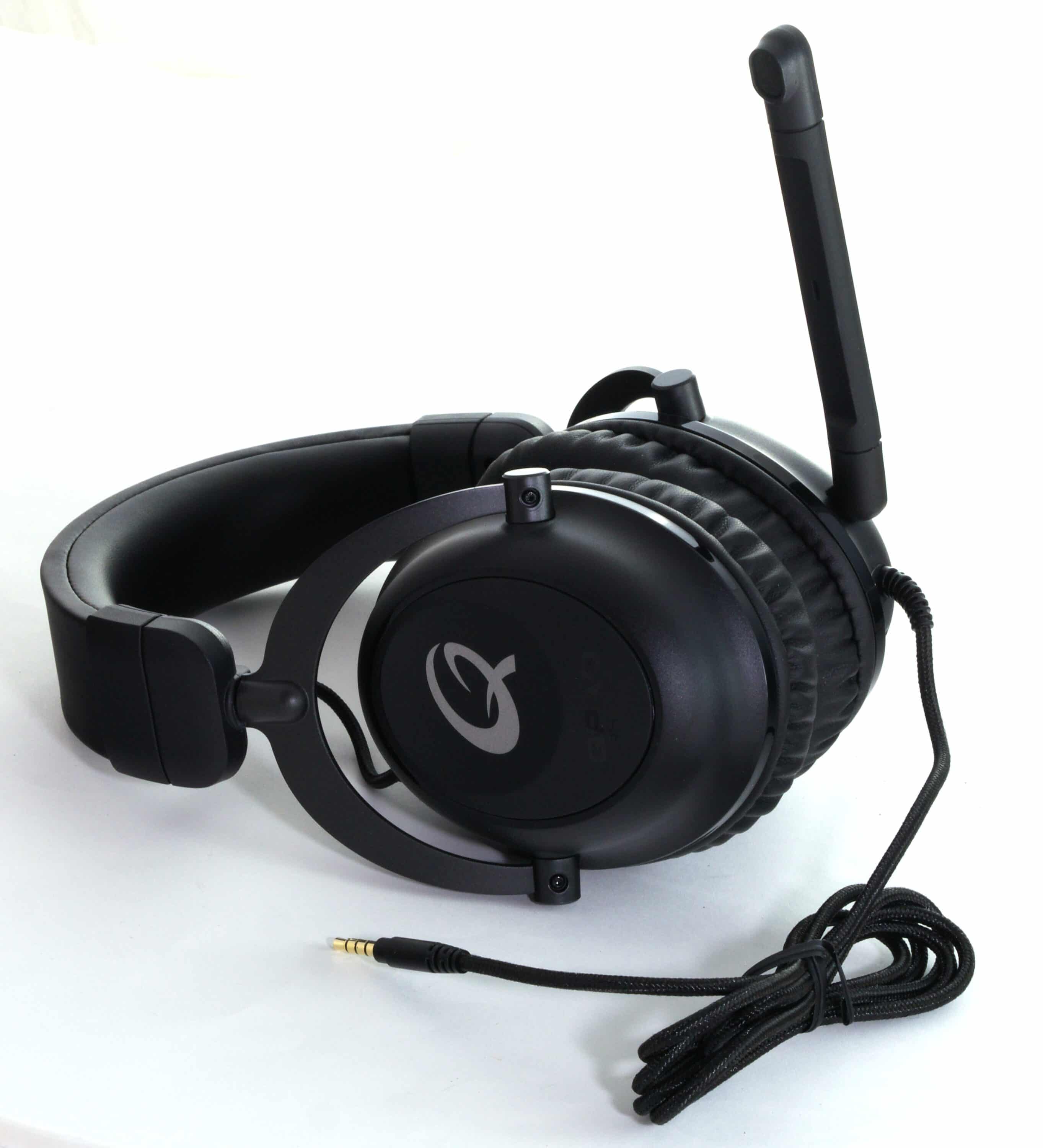 Das Audiokabel ist an der linken Hörmuschel befestigt, die zudem die Klinkenbuchse für das Mikrofon beherbergt. Dieses besteht aus einem starren Kunststoffarm, sodass sich die Aufnahmemembran an einem festen Punkt links des Mundes befindet. Zusätzlich befinden sich an der linken Ohrmuscheln noch zwei Bedienelemente: Ein Stummschalt-Knopf für das Mikrofon sowie ein Lautstärkerad, durch das das Tonsignal des Abspielgeräts nachträglich gedämpft werden kann.