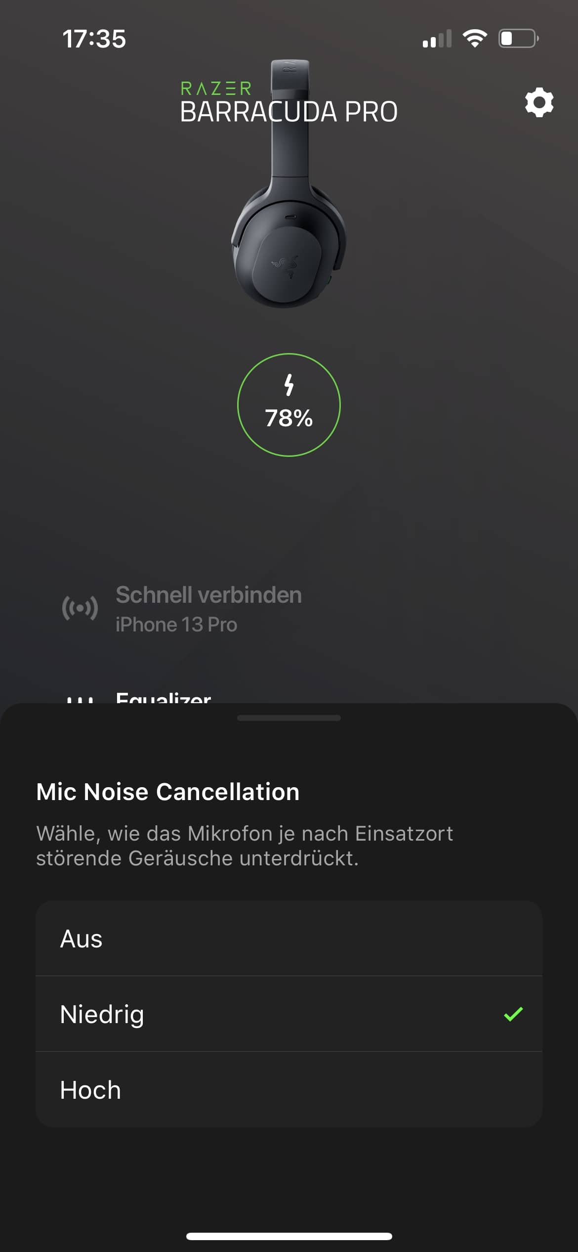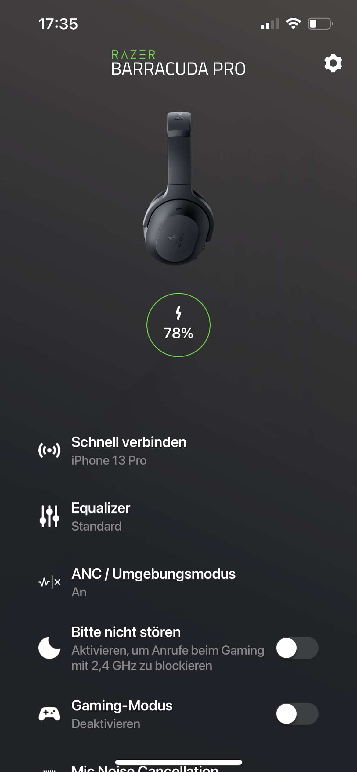 Grundsätzlich bieten beide Softwarelösungen einen ganz ähnlichen und ziemlich hohen Funktionsumfang. Die Mobile-App informiert auf der Startseite über den Akkustand und lässt uns direkt den „Bitte nicht stören“- und Gaming-Modus aktivieren oder ausschalten. Außerdem können wir direkt die Geräuschunterdrückung des Mikrofones in zwei Stufen anpassen bzw. deaktivieren.
