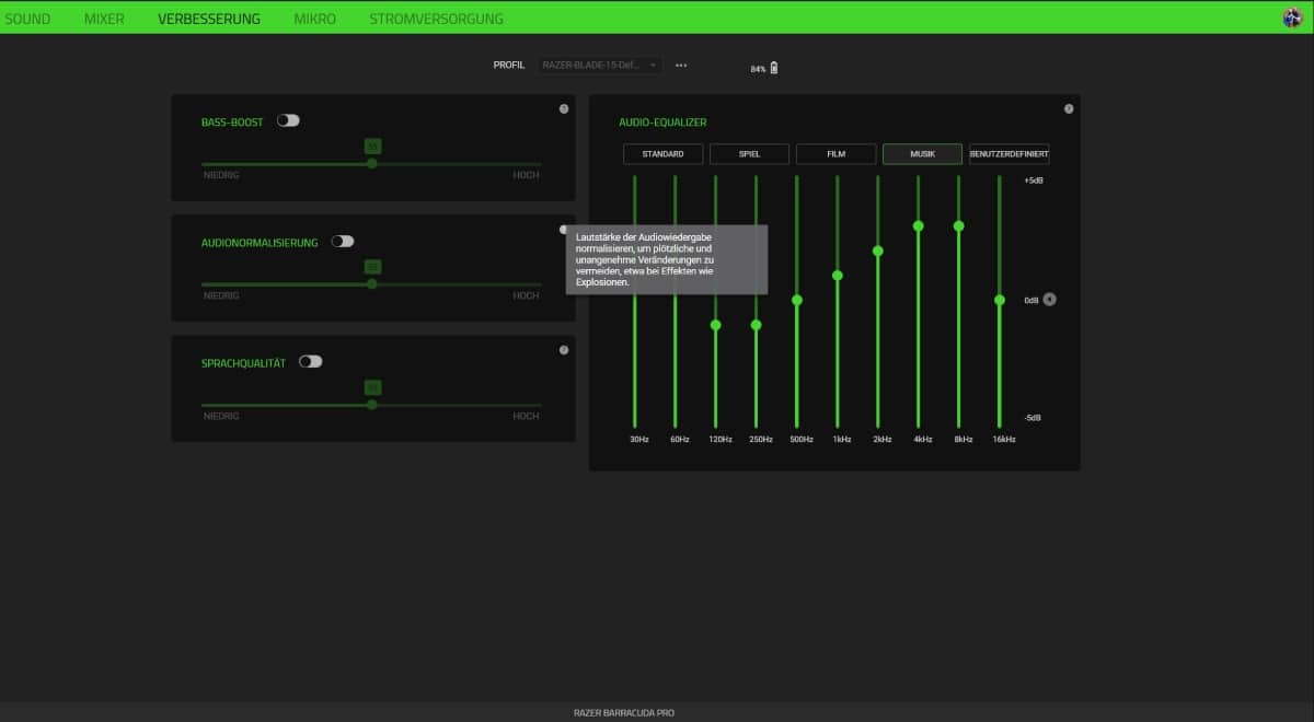 Zudem können wir Wiedergabe- und Aufnahmequalität deutlich detaillierter einstellen und auf Wunsch beispielsweise einen Bass-Boost, eine Audionormalisierung oder eine Verbesserung der Sprachqualität hinzuschalten.