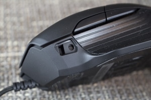 Wirklich ungewöhnlich ist die abnehmbare dpi-Taste. Auf der linken Seite lässt sich die dpi-Taste herausnehmen und mit einem anderen Aufsatz versehen. Optisch auffällig ist diese Funktion nur, wenn der Bereich nicht abgedeckt wird. In diesem Falle liegt eine große Einkerbung vor. Doch warum lässt sich die dpi-Taste überhaupt abnehmen? Dazu später mehr!