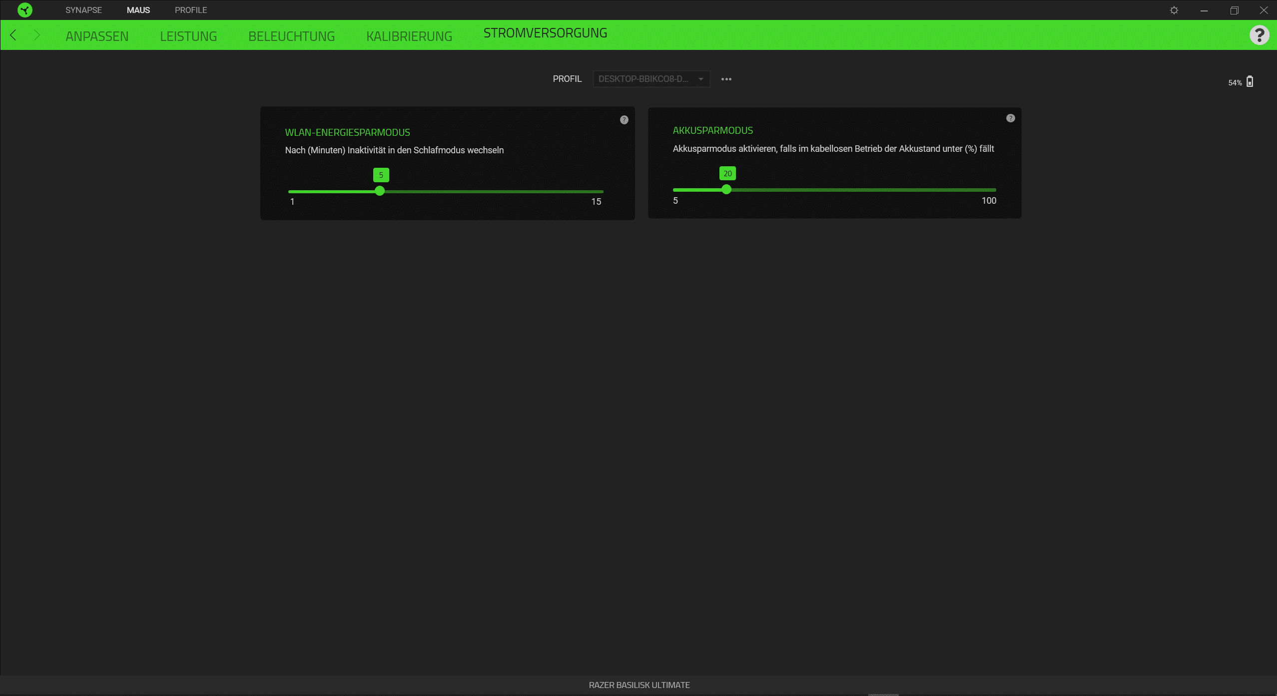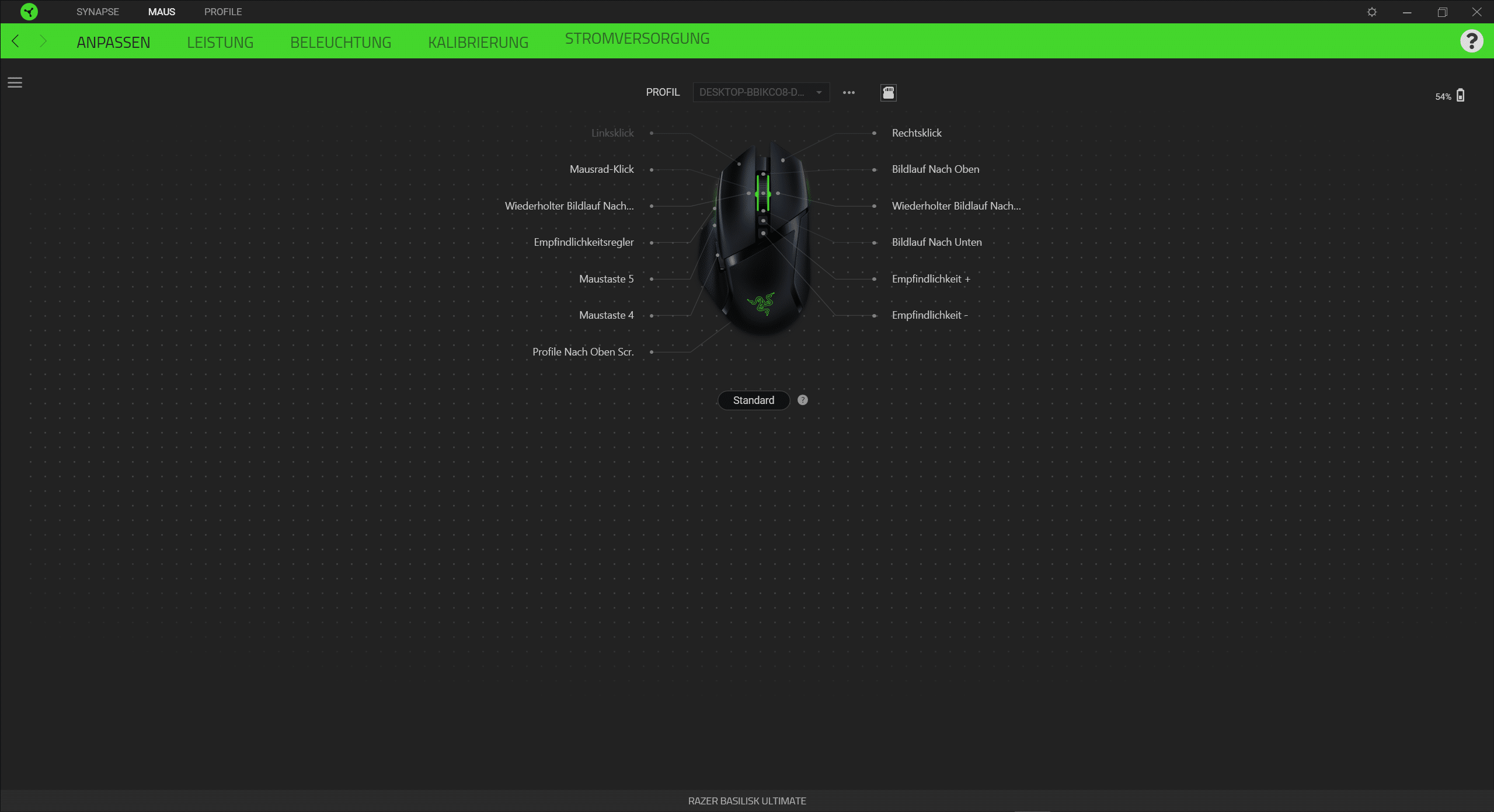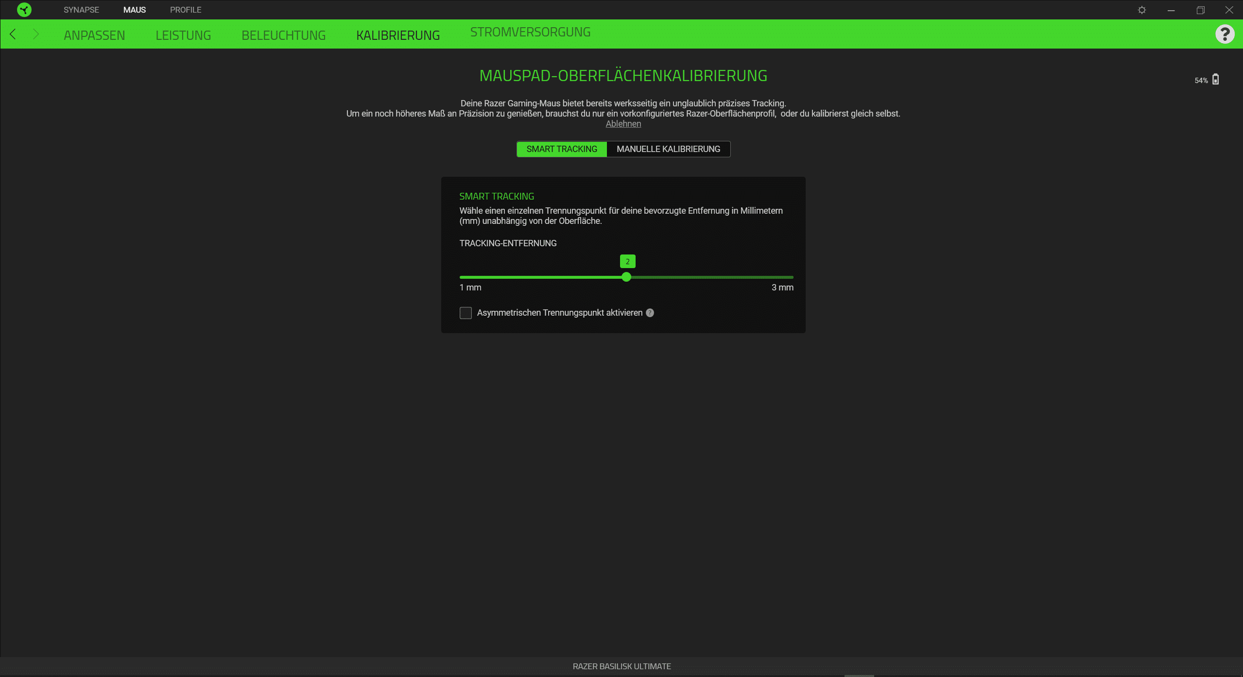 Die Razer Basilisk Ultimate wird in Kombination mit der Razer Synapse 3 Software verwendet. Die Einstellungsmöglichkeiten sind damit praktisch grenzenlos. Jede Taste inklusive der beiden Haupttasten kann frei belegt und konfiguriert werden. Außerdem ermöglicht die Software das Erstellen eigener Makros und eine individuelle Kalibrierung des Sensors.