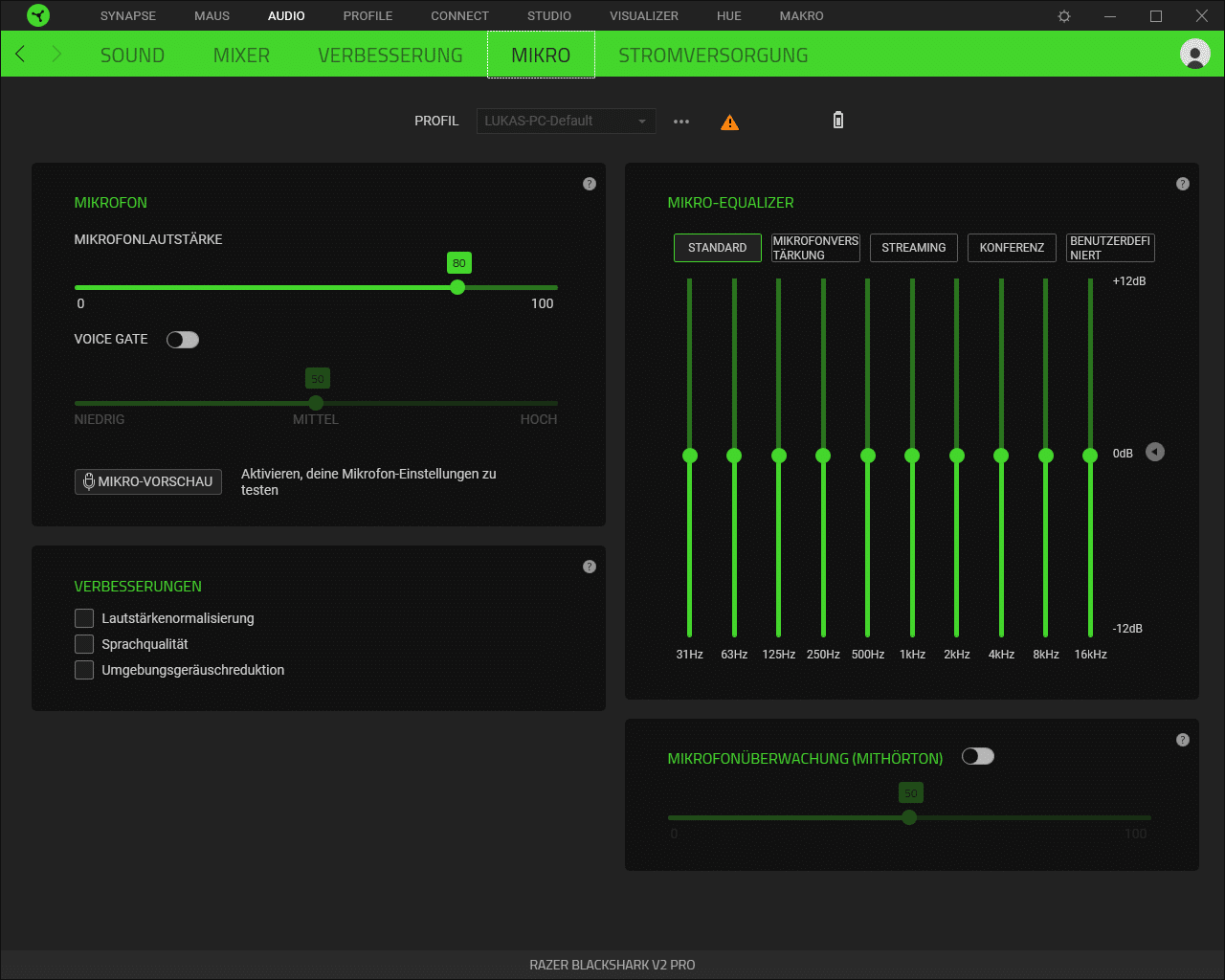 Für die beste Sprachwiedergabe könnt ihr im Bereich Mikro nochmal ordentlich Anpassungen vornehmen. Auch interessant für Streamer.