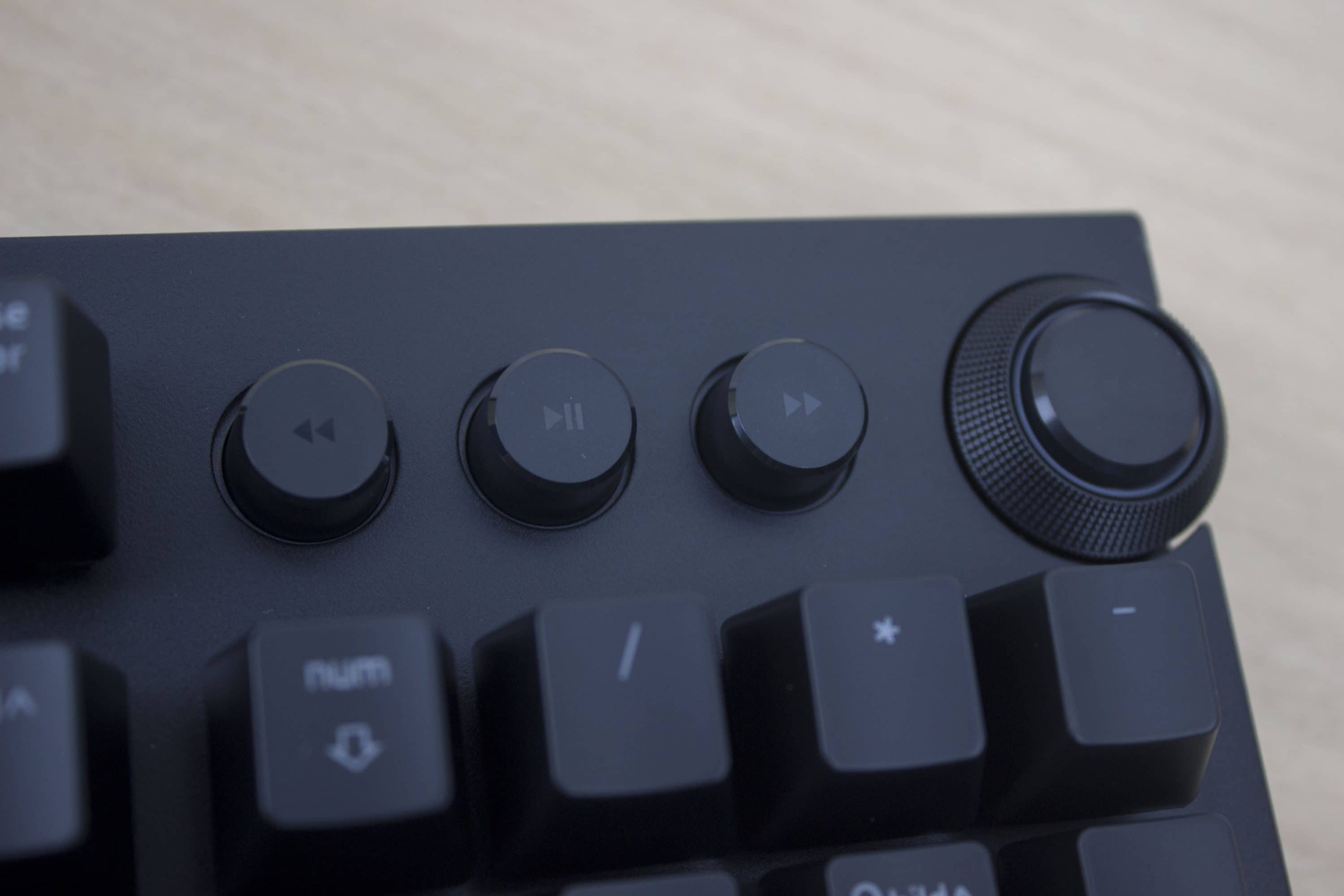 Allgemein weiß Razer mit der Verarbeitung der BlackWidow Elite zu überzeugen. Auch wenn es mal härter als im Alltag zu gehen sollte, ist diese Tastatur eine gute Waffe und macht einiges mit. Ein hochwertiges Produkt mit gutem Bedienungsgefühl. Dazu zählen auch die dedizierten Multimedia-Tasten. Über die drei Buttons können Musiktitel übersprungen oder pausiert/abgespielt werden. Über das Multimedia-Rad kann die Lautstärke verstellt werden, drückt ihr auf das Rad wird der Ton stumm geschaltet.