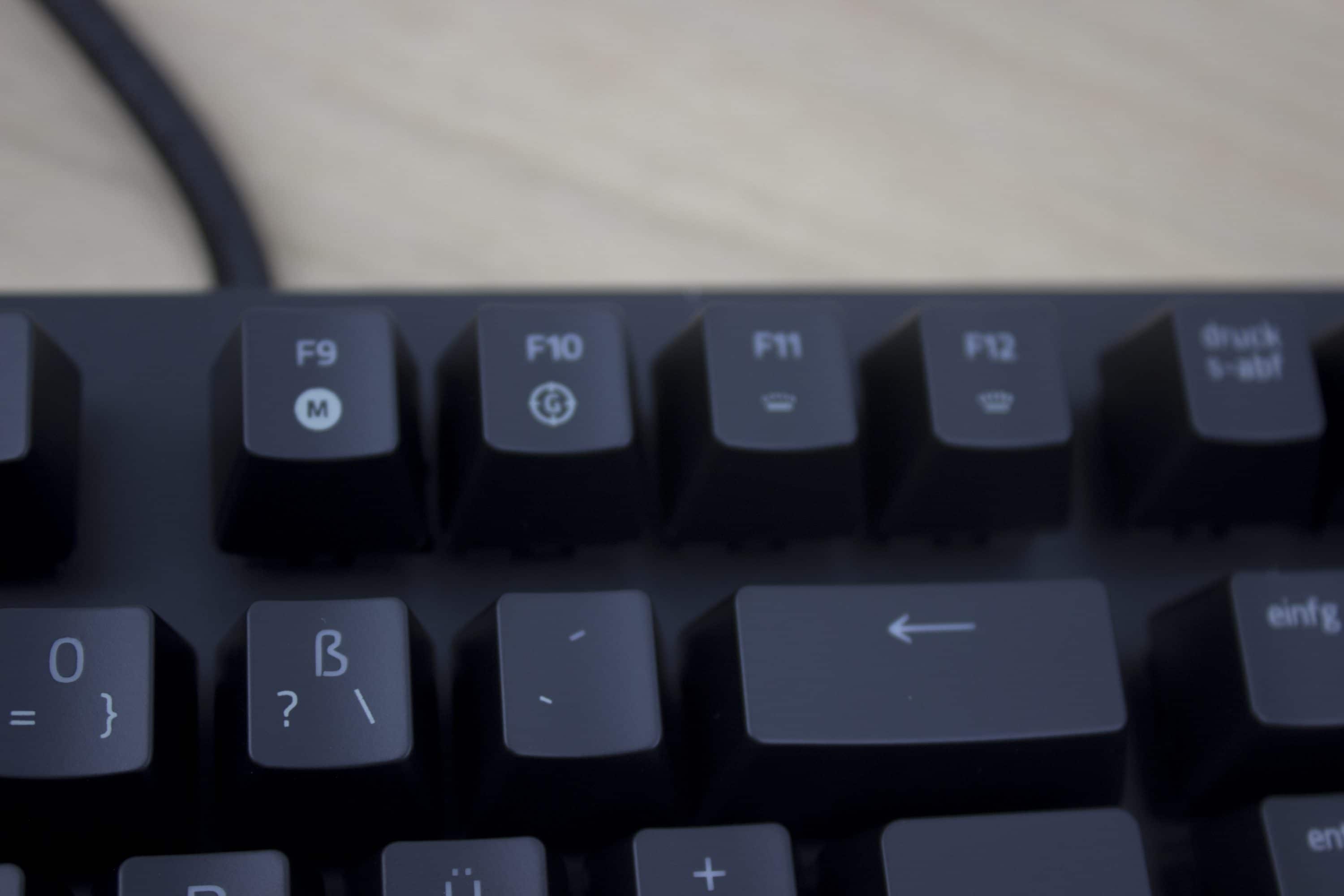 Unser Testmuster der Razer BlackWidow Elite verwendet die „Razer Green“-Switches. Bei diesen Schaltern beträgt der Hubweg nur 1,9 Millimeter. Durch den kurzen Weg können Gamer auf jede Situation schnell und präzise reagieren. Die Green-Switches sorgen aber auch für ein angenehmes Tippgefühl und jeder Tastendruck ist klar hörbar. Es wird gerne mit dem typischen „Schreibmaschinen-Sound“ verglichen, der auch bei der BlackWidow Elite aufkommt. Ob die Tastatur „Klackergeräusche“ von sich geben soll, kann bei mechanischen Tastaturen jeder für sich entscheiden, so auch bei der Razer BlackWidow Elite. Die „Green“-Switches sind die lauten „Klimpertasten“, Razer hat aber noch leise „Orange“- und „Yellow“-Switches im Angebot.