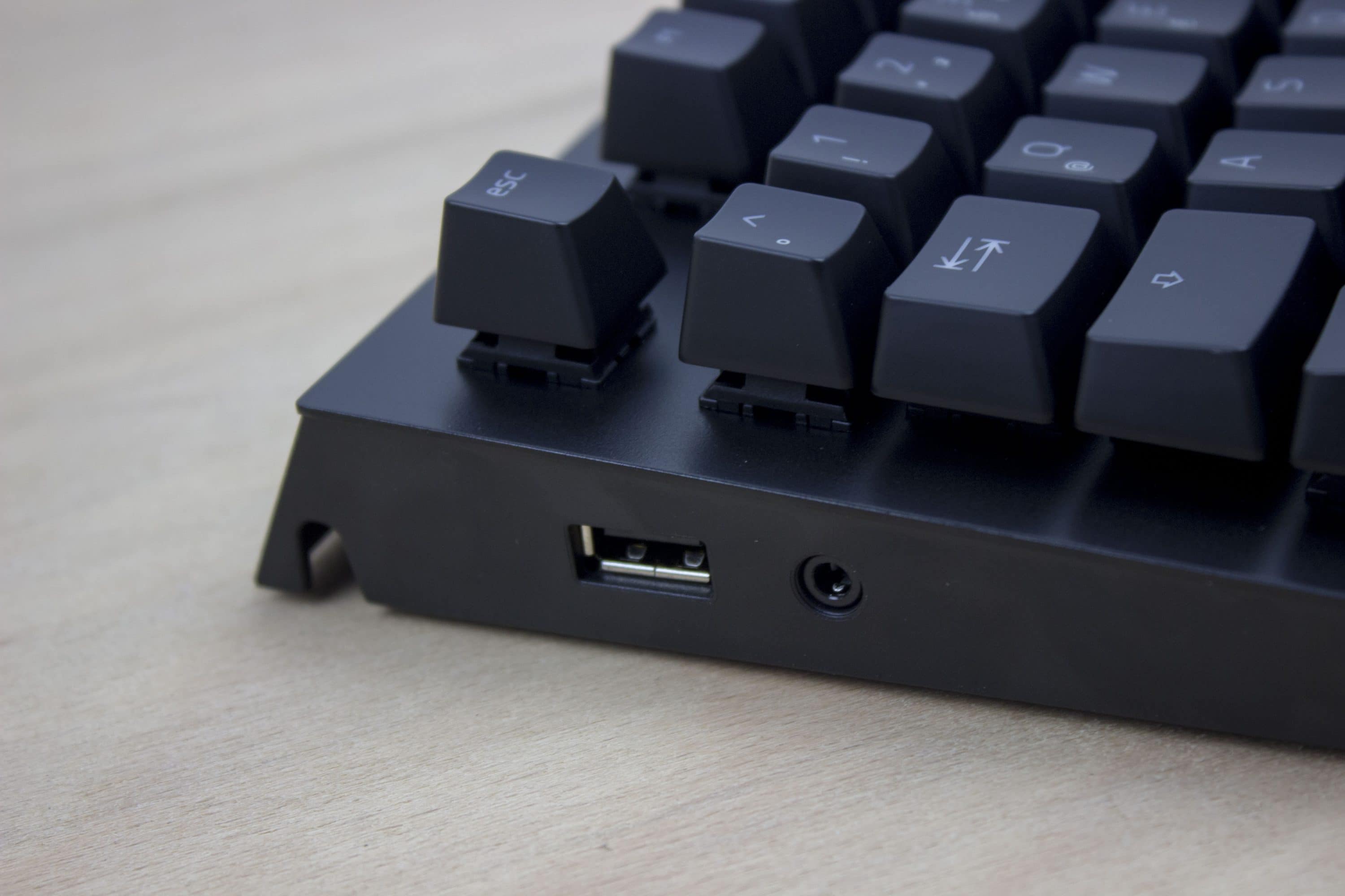 Die Tastatur selbst bringt aber noch ein großes Extra mit. Die Tastatur ist mit einem USB-2.0-Hub ausgestattet und es kann sogar ein Audiogerät verbunden werden. Das zwei Meter lange Anschlusskabel hat dementsprechend zwei USB-Anschlüsse sowie ein 3,5-mm-Audioanschluss.