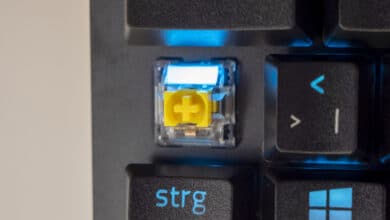 Damit kommen wir zum Praxistest: Was taugt die Tastatur? Ist sie nur ansehnlich und mit vielen Einstellungsoptionen ausgestattet oder hat sie auch handfeste Vorteile? Unsere Erwartungen an die BlackWidow V3 Mini HyperSpeed waren hoch, verspricht doch bereits der Name des Geräts einiges. Ausgestattet ist die Tastatur wahlweise mit grünen oder gelben mechanischen Switches, die ihre je eigenen Vor- und Nachteile mit sich bringen. Die grünen Schalter sind besonders taktil und geben ein akustisches Feedback. Die nötige Auslösekraft liegt bei 50 G, der Auslösepunkt bei 1,9 mm. Mit einem spürbaren Widerstand soll der Schalter ungewünschtes Auslösen verhindern. Die gelben Schalter hingegen setzen ganz auf Geschwindigkeit: Mit einem Auslösepunkt bei 1,2 mm lassen sich hier blitzschnell Aktionen ausführen – bei Ego-Shootern und ähnlichen Spielen können sie vorteilhaft sein. Darüber hinaus sind sie anders als die grünen Schalter im Betrieb still. Eine Hierarchisierung der Schalter halten wir für wenig sinnvoll; sie sind schlicht für unterschiedliche Einsatzbereiche konzipiert. Die Wahlmöglichkeit, die allen Nutzerinnen und Nutzern offensteht, halten wir daher für sehr sinnvoll. Die Lebensdauer beider Tasten liegt laut Razer bei 80 Millionen Anschläge – was wir in unserem Praxistest selbstverständlich nicht genauer untersuchen konnten. Positiv aufgefallen sind uns jedenfalls die zum Einsatz kommenden Tastenkappen: Die Doubleshot-ABS-Kappen sind hochwertig und wirkten langlebig. Darüber hinaus sorgen sie für ein angenehmes Gefühl beim Benutzen der Tastatur.