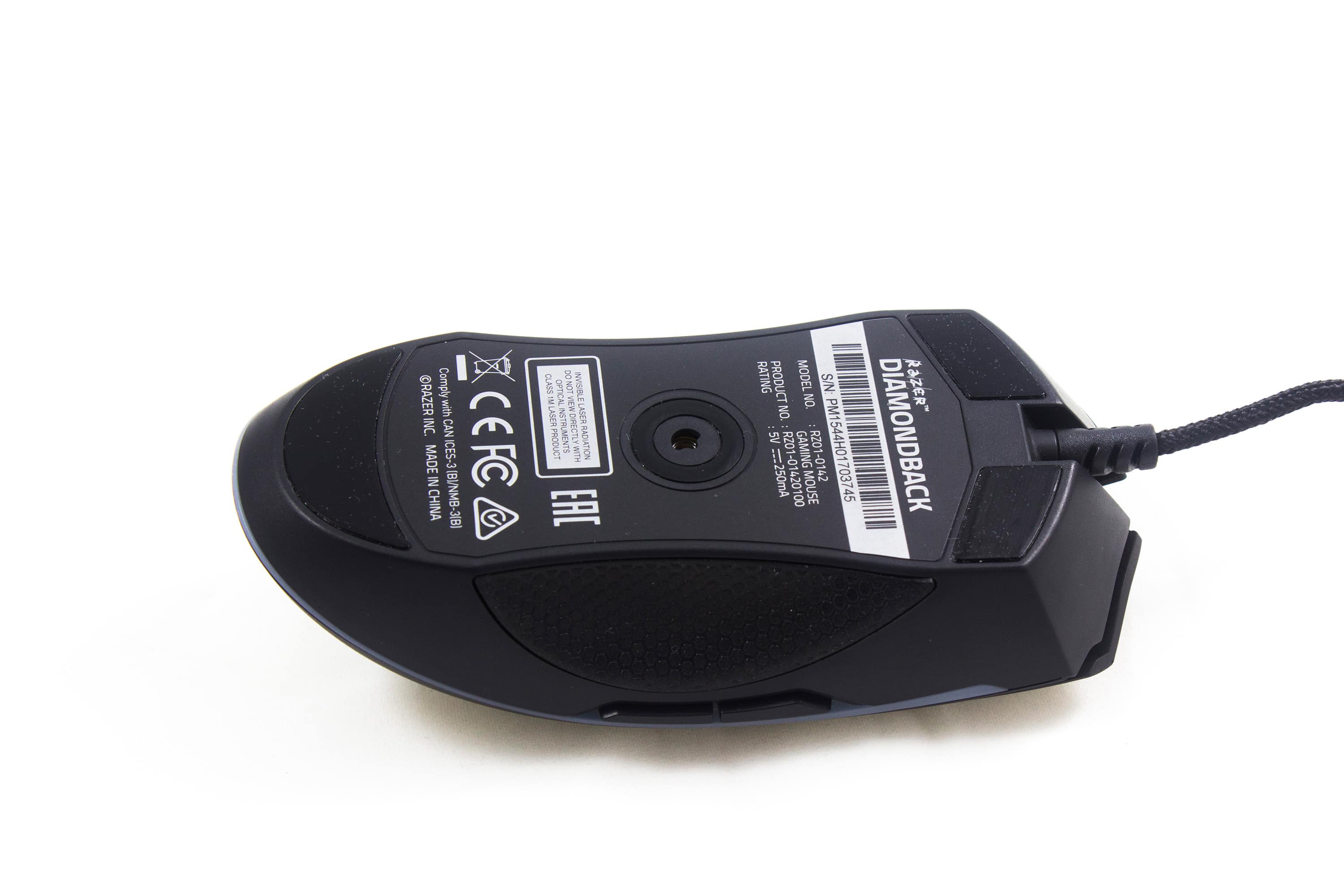 Die Diamondback ist vom Design her eher schlicht gehalten, in einem matten Schwarz. Lediglich die Seiten-Tasten, für Links sowie Rechtshänder, fallen auf. Durch hochwertige Materialien schafft die Maus es, trotz schlichtem Look, immer noch edel zu erscheinen. Das Geriffelte-Mausrad fällt erst bei genauerem Betrachten auf.