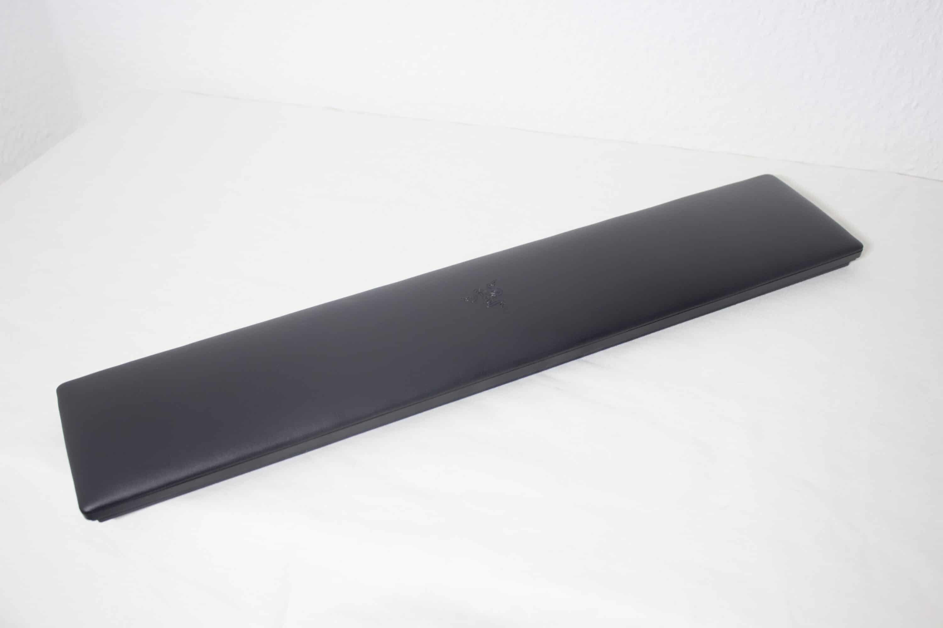 Ist die V2 Analog nur eine Neuauflage der Razer Huntsman Elite (hier im Test)? Optisch würden sich die Tastaturen im ausgeschaltetem Zustand kaum von einander unterscheiden lassen. Das Layout und Design ist genau das selbe. Hohe Tasten, Multimedia-Panel mit vier Tasten und einem Drehregler, USB-Pass-Through sowie die magnetische Handballenauflage. Aber warum auch gutes verwerfen, wenn man es einfach noch besser machen kann? Zumindest die Handballenauflage ist jetzt komplett mit Kunstleder überzogen und hat keinen Rand mehr, die RGB-Beleuchtung ist auch noch geblieben. Das Design hat sich somit nicht verändert. Ein mattschwarzes Aluminium-Gehäuse auf einem Kunststoff-Unterbau macht mit der passenden Beleuchtung immer noch einiges her.