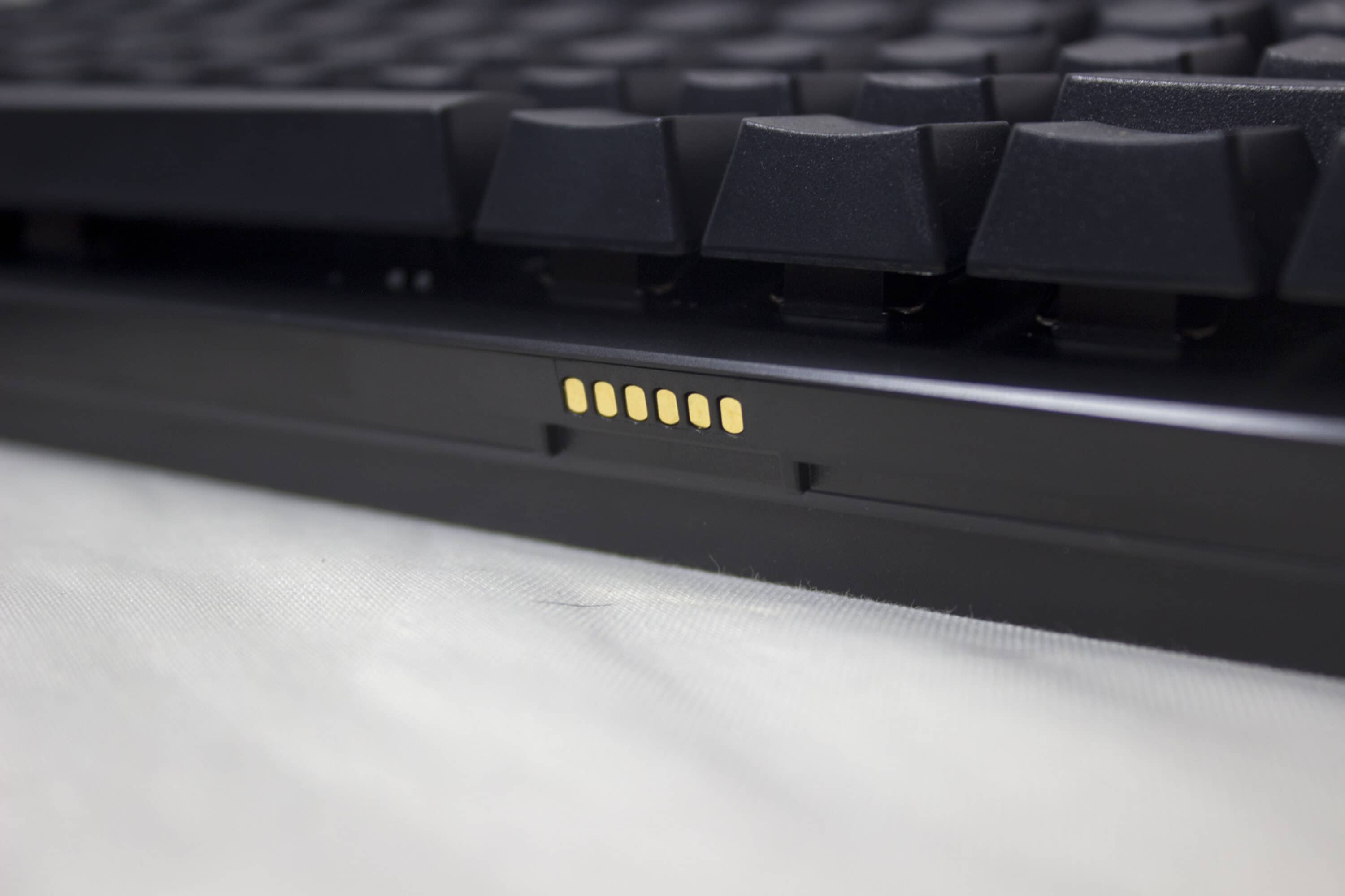 Für mehr Anpassbarkeit sind an der Unterseite noch gummierte Füße angebracht. Mit ihnen kann die Höhe der Tastatur in zwei verschiedenen Höhen eingestellt werden und außerdem verrutscht sie nicht. Dafür sorgt auch das Gewicht der Tastatur, ein Leichtgewicht ist sie nämlich nicht, in ihr ist aber auch ordentlich Technik verbaut.