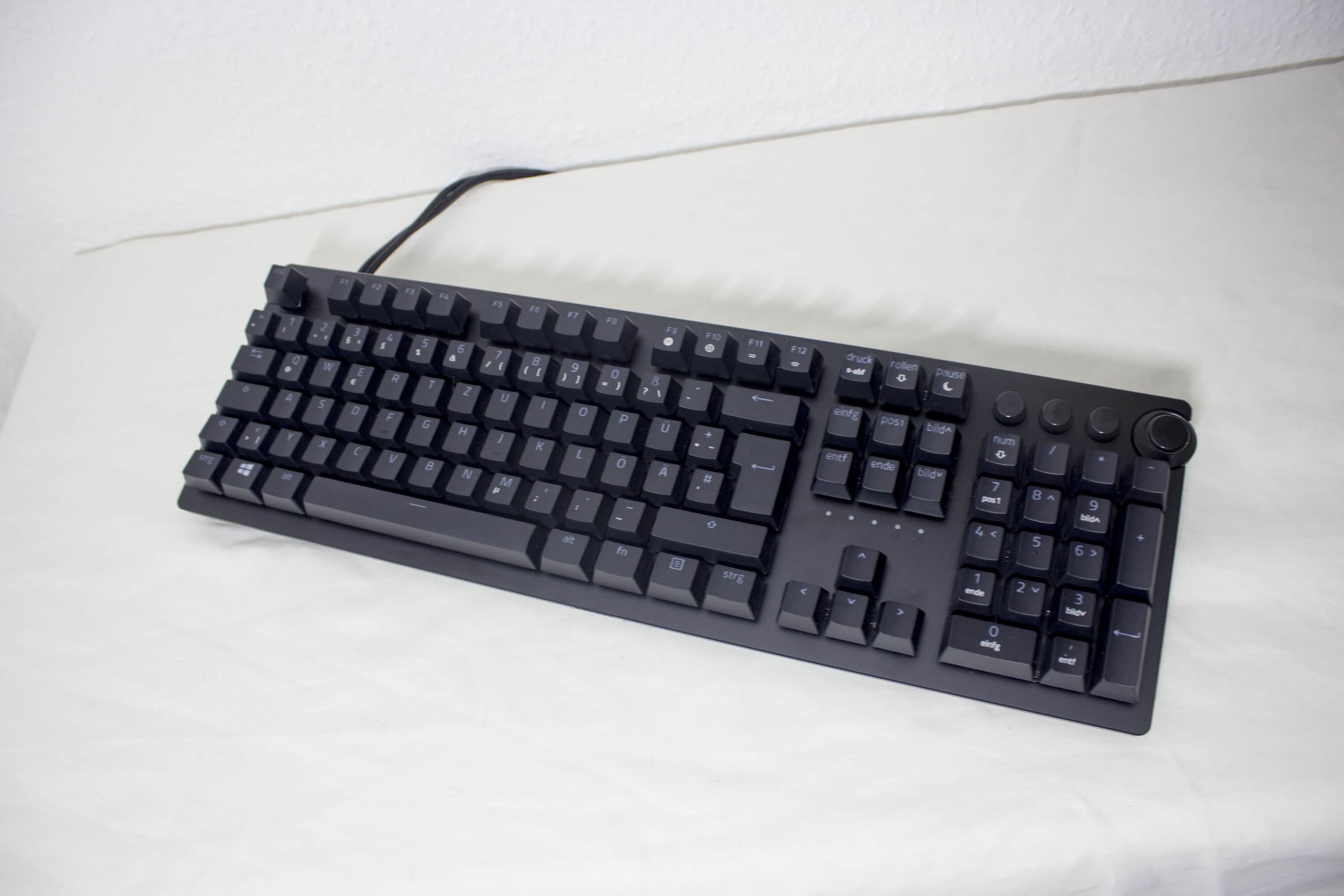 Für Langlebigkeit sorgen nicht nur die bis zu 100 Millionen Anschläge Lebenszeit pro Taste, sondern auch die verwendeten Materialien. Beispielsweise werden Razers DoubleShot PBT-Tastenkappen verwendet. Diese sind wesentlich abriebfester als herkömmliche ABS-Kappen. Die Tastenkappen bestehen aus zwei Ebenen, die direkt miteinander verbunden sind und sorgen so für mehr Stabilität und Langlebigkeit. Ein Nachteil scheint dies zu bringen, denn längere Beschriftungen auf den Tasten sind nicht komplett ausgeleuchtet wie beispielsweise die Tasten „Rollen“ oder „Pause“.