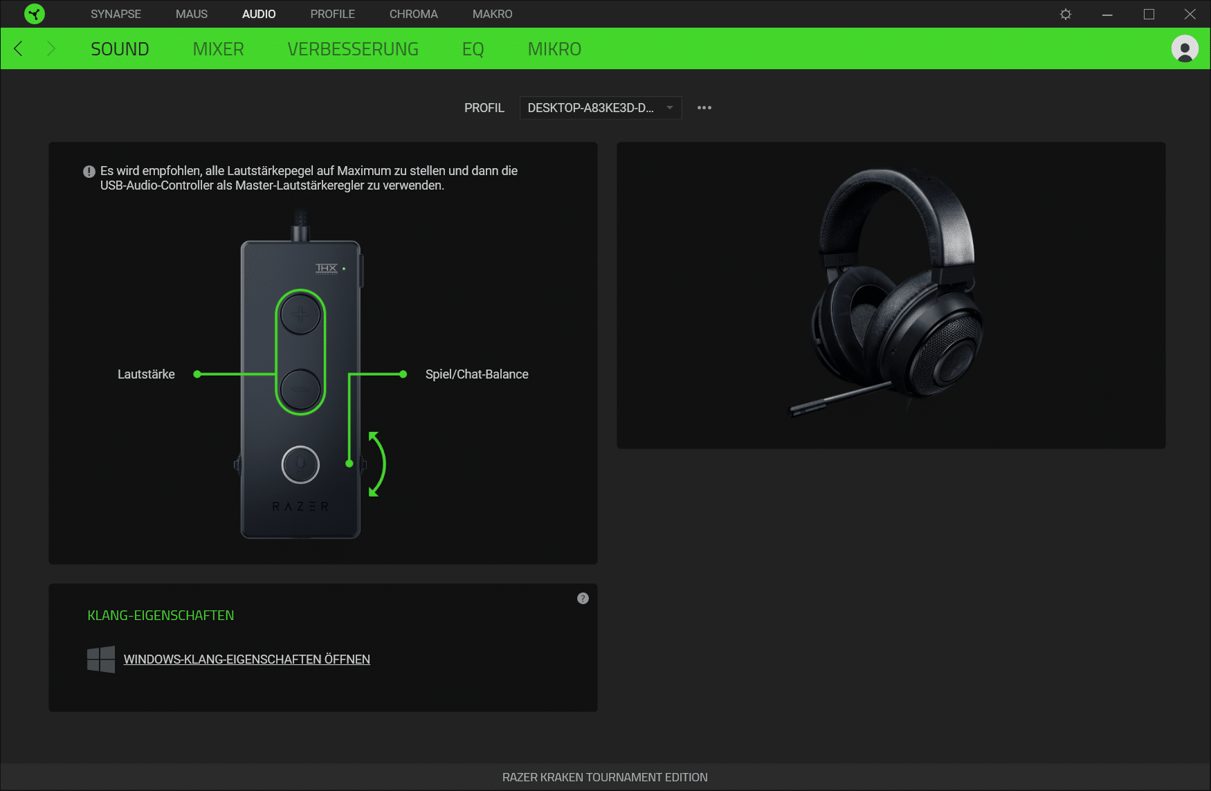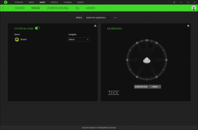 Wer individuelle Einstellungen vornehmen will, benötigte die kostenlose Synapse-3-Software, die auf der Webseite des Herstellers erhältlich ist. Hiermit werden die Optionen, die die THX-Spatial-Audio-Bedienung bietet, noch einmal deutlich erweitert.