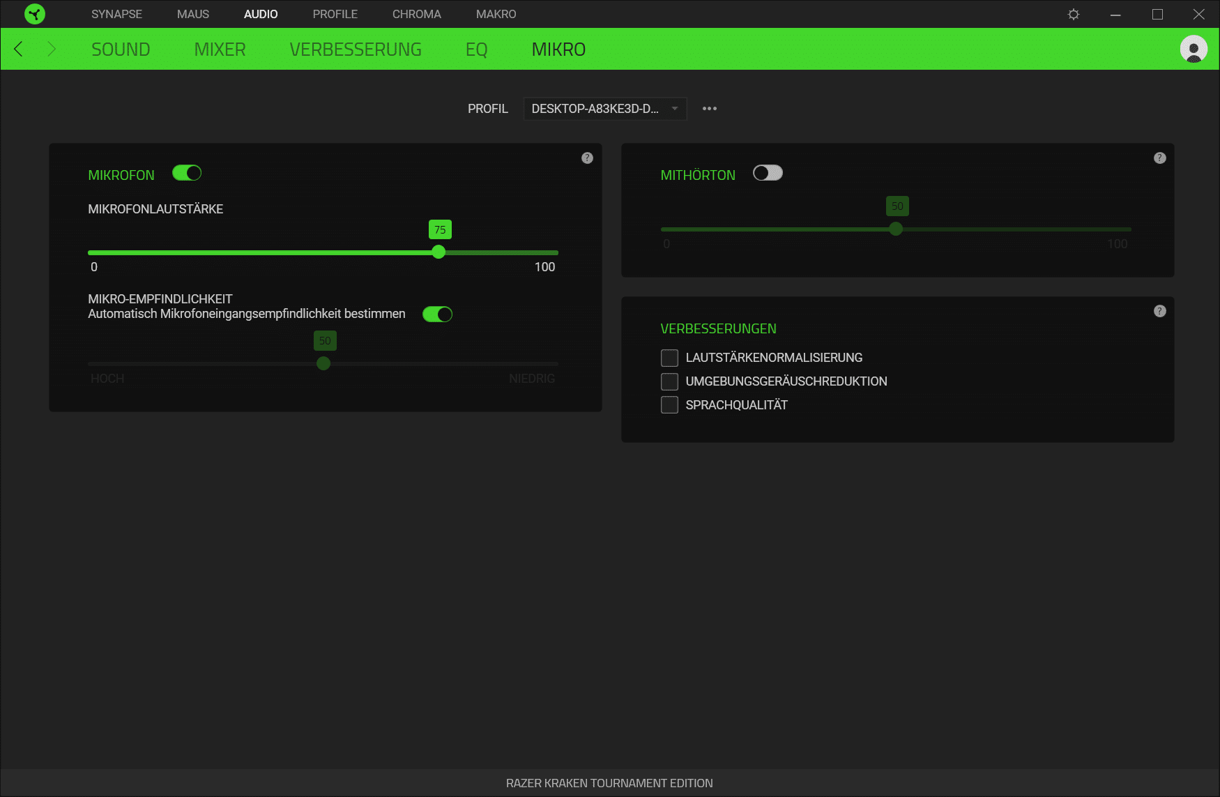 So ist es in der einfach zu installierenden und intuitiv bedienbaren Software beispielsweise möglich, festzulegen, welche Programme mit Stereo- und welche mit Surround-Sound genutzt werden. Darüber hinaus besteht beispielsweise die Möglichkeit, den Bass einzustellen. Insgesamt bietet die Software einige Optionen, Einfluss auf den Klang des Headsets zu nehmen, was sicherlich vorteilhaft ist, da eigene Vorlieben und Wünsche auf diesem Wege umgesetzt werden können.