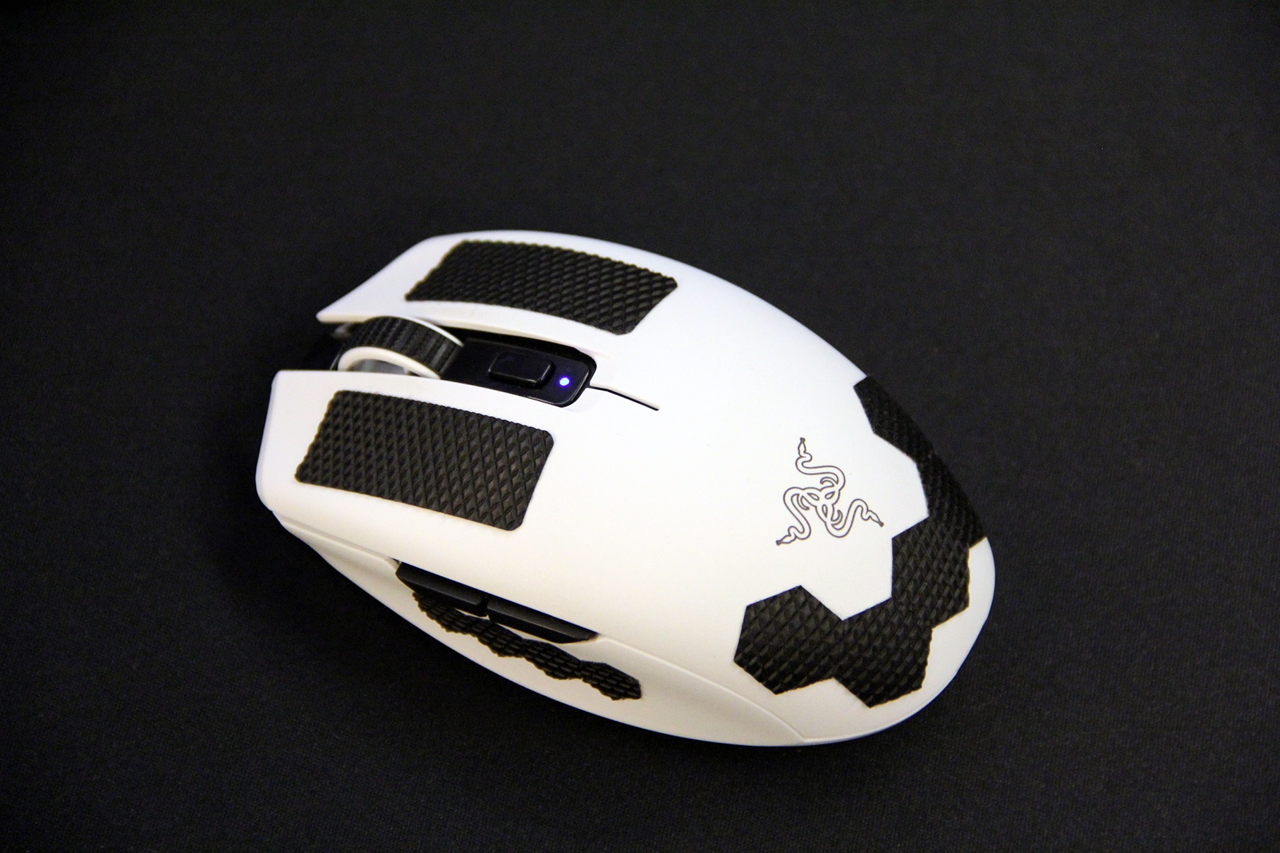 Das Universal Grip Tape haben wir einfach direkt an der Orochi V2 ausprobiert. Das Tape hält problemlos und verbessert die Griffigkeit der Maus nochmal deutlich.