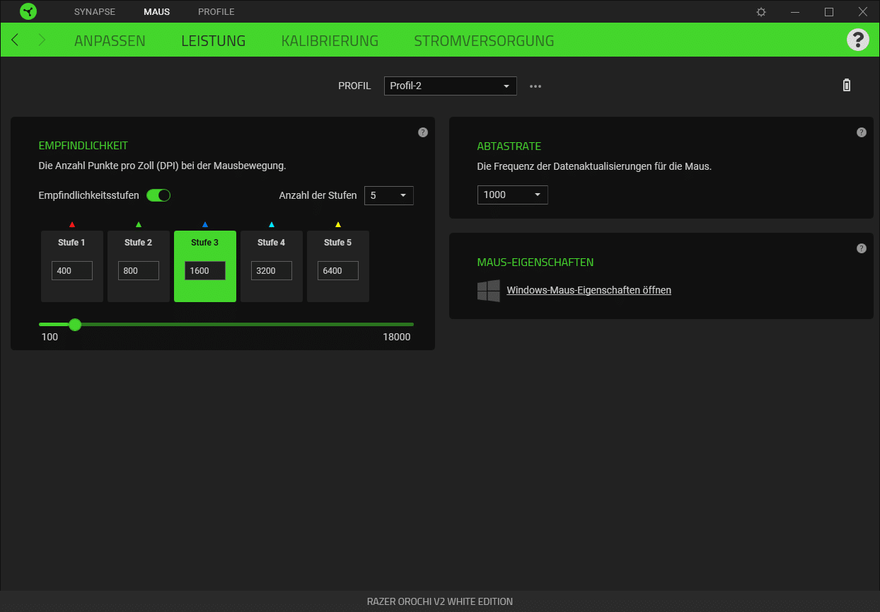 Die Orochi V2 installiert sich beim erstmaligen Anschließen am Computer problemlos selbstständig und ist direkt einsatzbereit. Die ganze Bandbreite der Funktionen bieten sich allerdings erst mit der Software Razor Synapse. Hier könnt ihr beispielsweise Profile anlegen, die fünf DPI-Stufen anpassen oder die Tasten belegen. Mit dem Hypershift-Feature lassen sich zudem die insgesamt sechs Maustasten doppelt belegen.