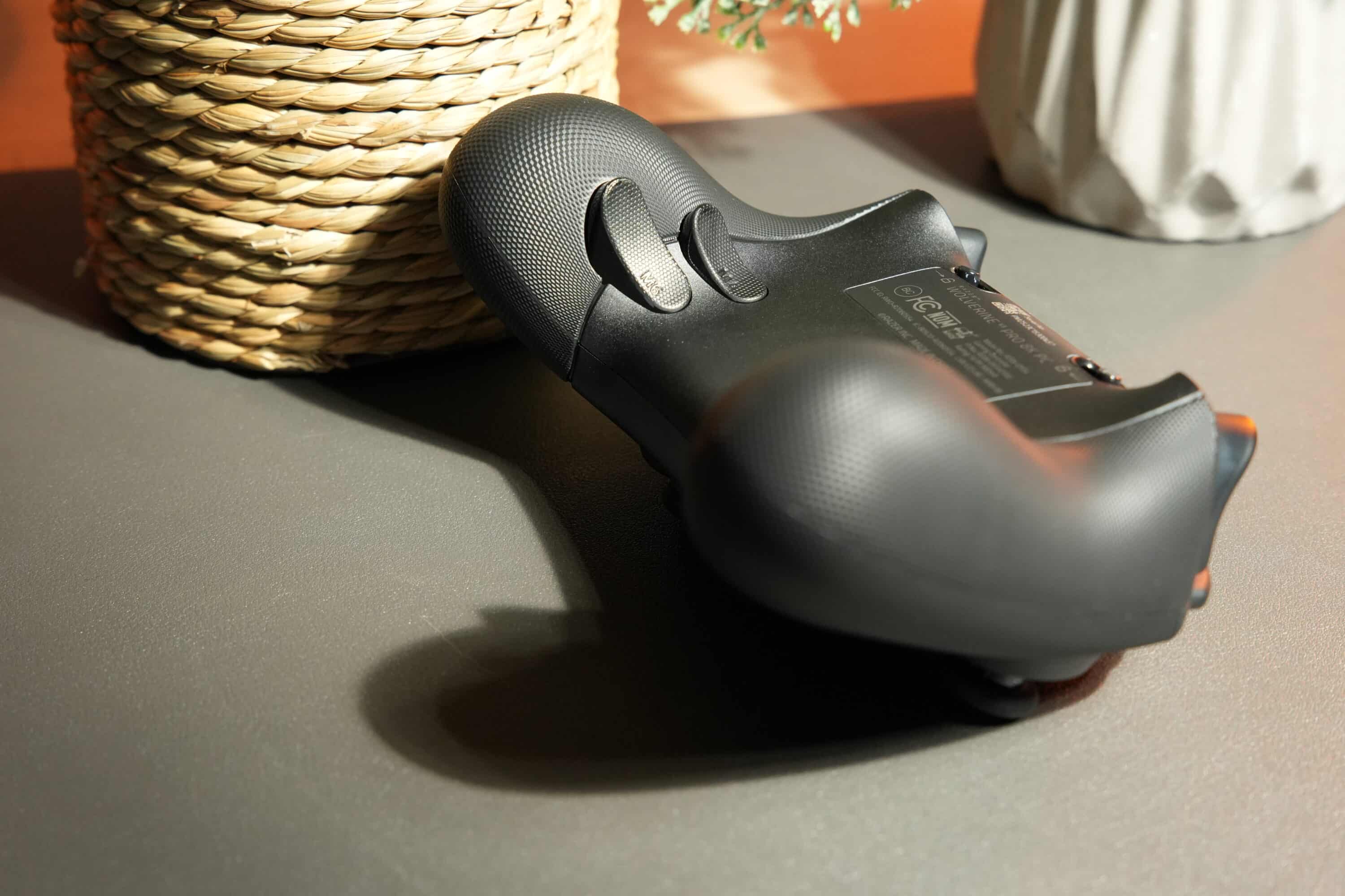 Besonders praktisch sind natürlich die sechs Zusatztasten, die nicht nur mit einem präzisen Feedback begeistern, sondern auch exzellent positioniert sind. Die rückseitigen Paddels lassen sich sowohl oben als auch unten angenehm leicht und clicky auslösen und innerhalb von Synpase frei belegen – auf Wunsch sogar mit Makros. Sehr praktisch, um Kommandos auszuführen, ohne dafür die Finger von den Analogsticks nehmen zu müssen.