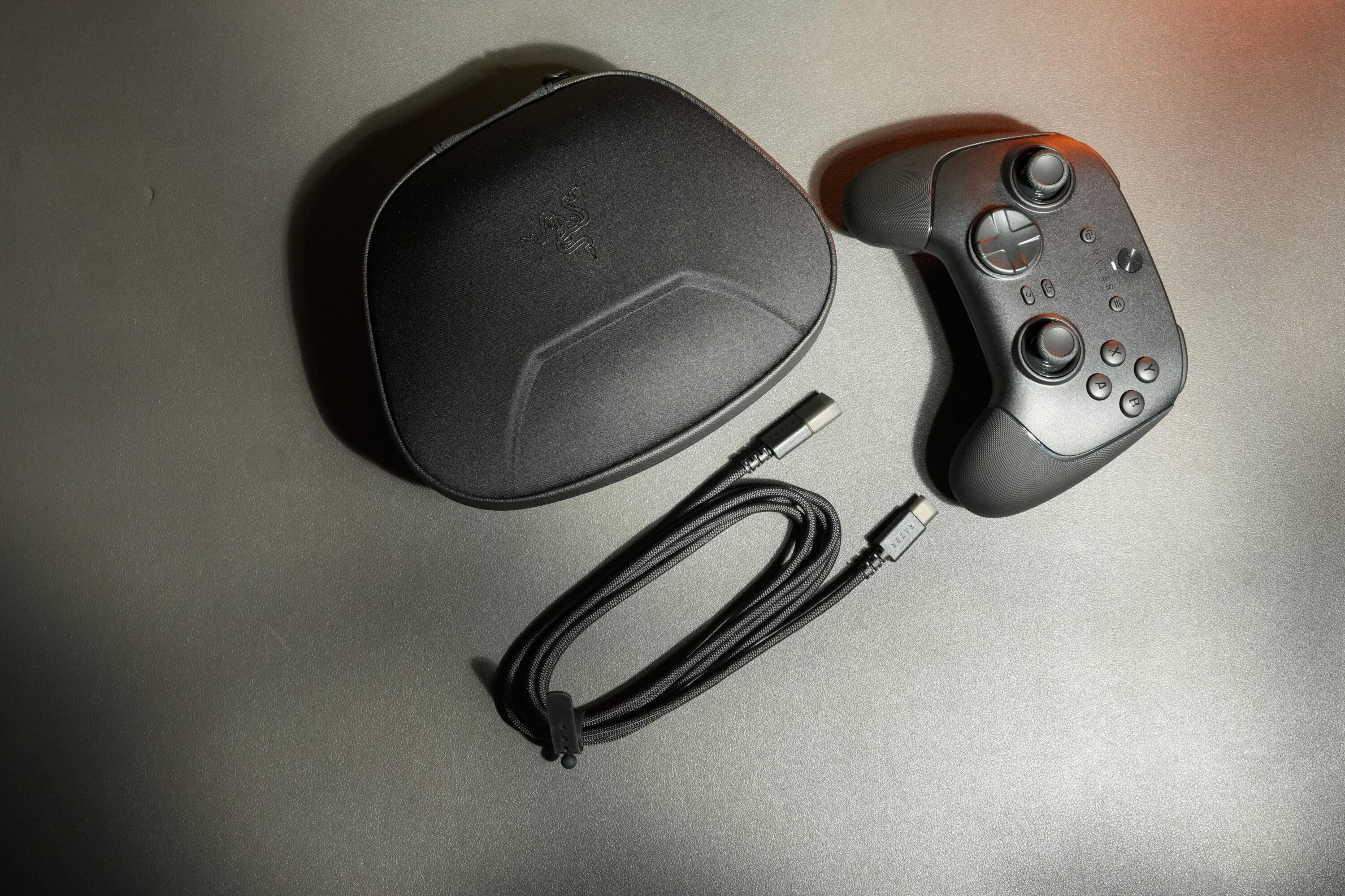 Der Lieferumfang unterstreicht den Premiumanspruch: Im stabilen Hard-Shell-Case befinden sich Controller, USB-C-Ladekabel, Dongle für kabelloses Spiel und zwei zusätzliche Thumbsticks zum Wechseln – ein bei der kabelgebundenen Variante nicht enthaltener Bonus. Hier hast du die Wahl zwischen einem höheren, nach innen gewölbten Analogstick oder einem flacheren, nach außen gewölbten Model – je nachdem, was dir besser gefällt.