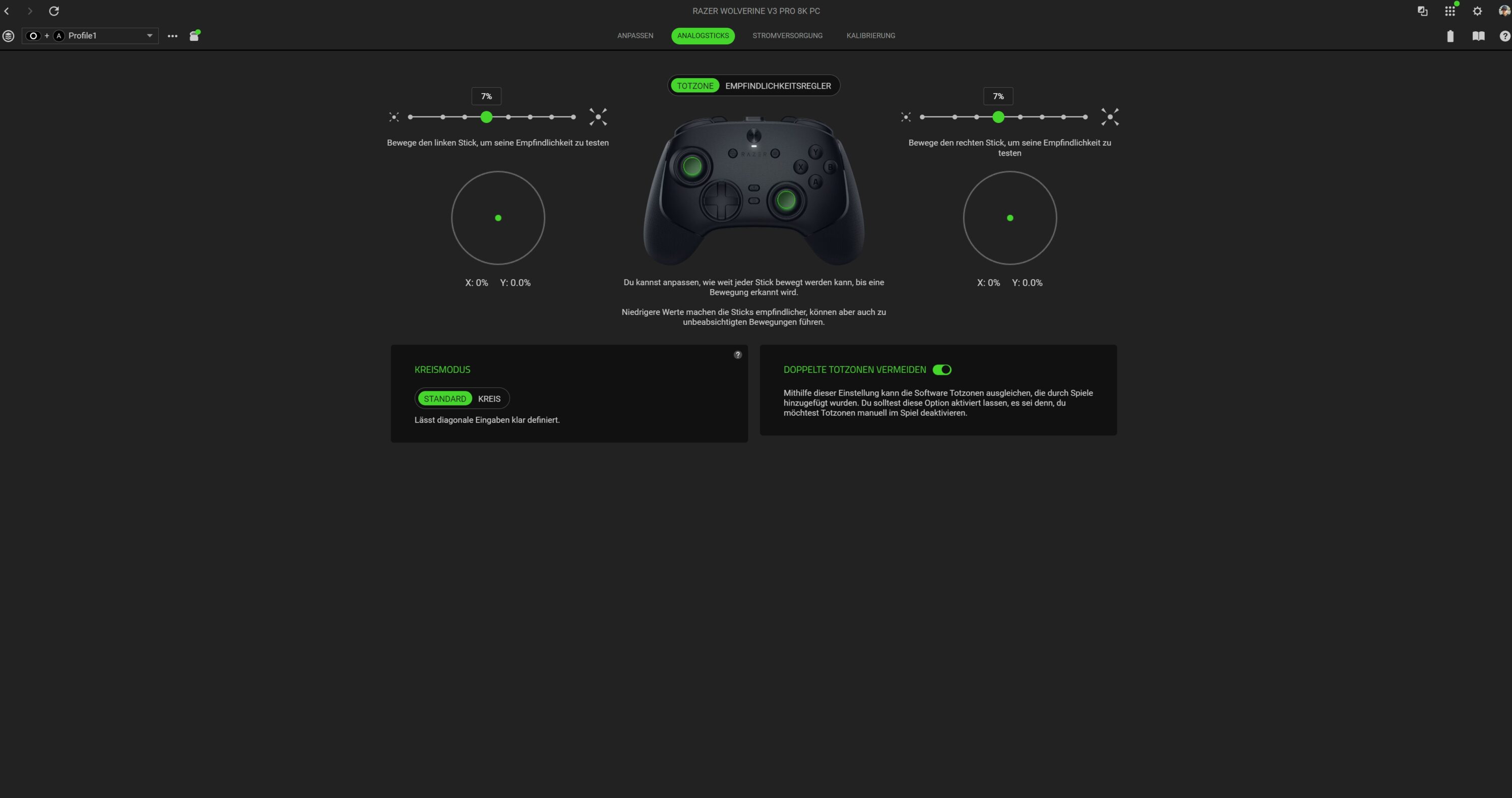 - Empfindlichkeit und Response-Curves der Thumbsticks