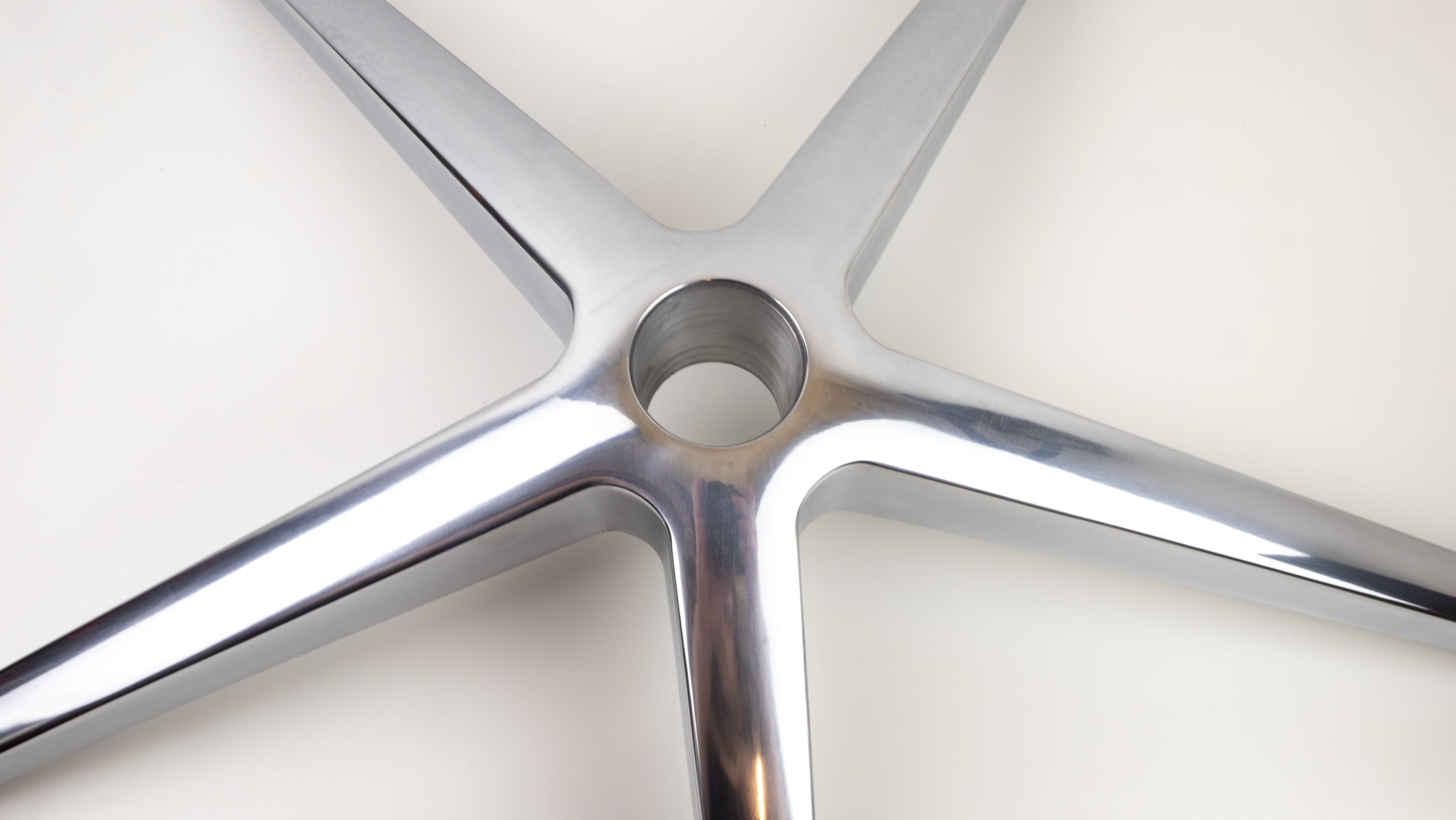 Armlehnenträger und das Fußkreuz sind zudem aus leichtem, aber sehr robustem Aluminium. Ein Grund dafür, dass der Stuhl insgesamt nur 26 Kilogramm wiegt.