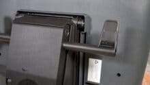 Natürlich können diese auch hoch und runter manövriert und die Auflagen vor- und zurückgeschoben werden. Wer sich an den Armlehnen stört, kann diese mit einem Knopfdruck auch nach hinten wegdrehen. Ganz wegklappen ist jedoch nicht möglich.