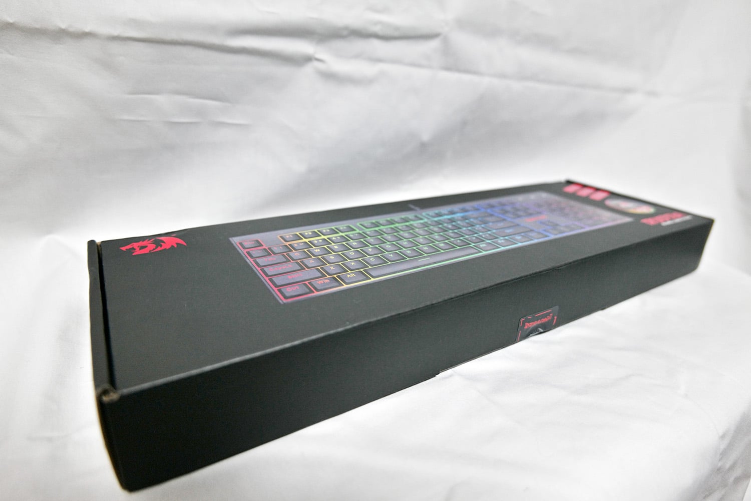 Stilistisch ist die Redragon K565 absolut neutral gehalten und vermisst jegliche gaming-typischen Formen oder Aufdrucke. Lediglich das Redragon Logo könnte man hierbei noch als Design-Element durchgehen lassen. Den Bezug zum Gaming stellt ansonsten das RGB-Feature her, die markante dunkle Farbe und die verwendeten mechanischen Schaltertypen, welche sich besonders an Gamer*innen richten.