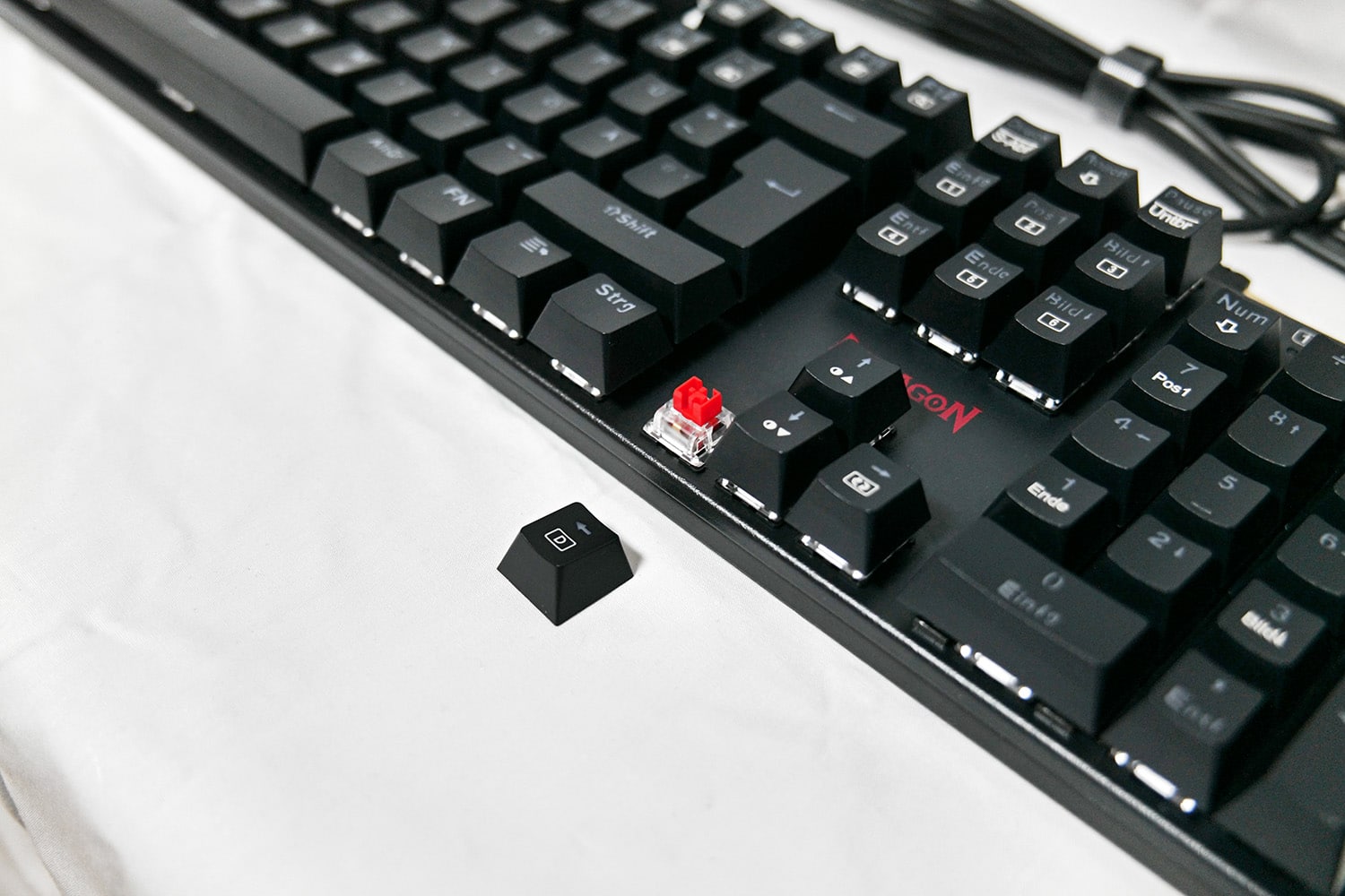 Die verbauten Outemu-Schalter sorgen für eine hohe Kompatipilität mit anderen Cherry-ähnlichen Ersatzteilen und erschienen uns im Test auch qualitativ einwandfrei. Der Wechselvorgang erforderte in unserem Fall zwar etwas Geschick und Beharrlichkeit, die Möglichkeit einzelne Schalter, selbst im laufenden Betrieb, ohne Lötkolben wechseln zu können, ist jedoch eindeutig ein großer Pluspunkt.
