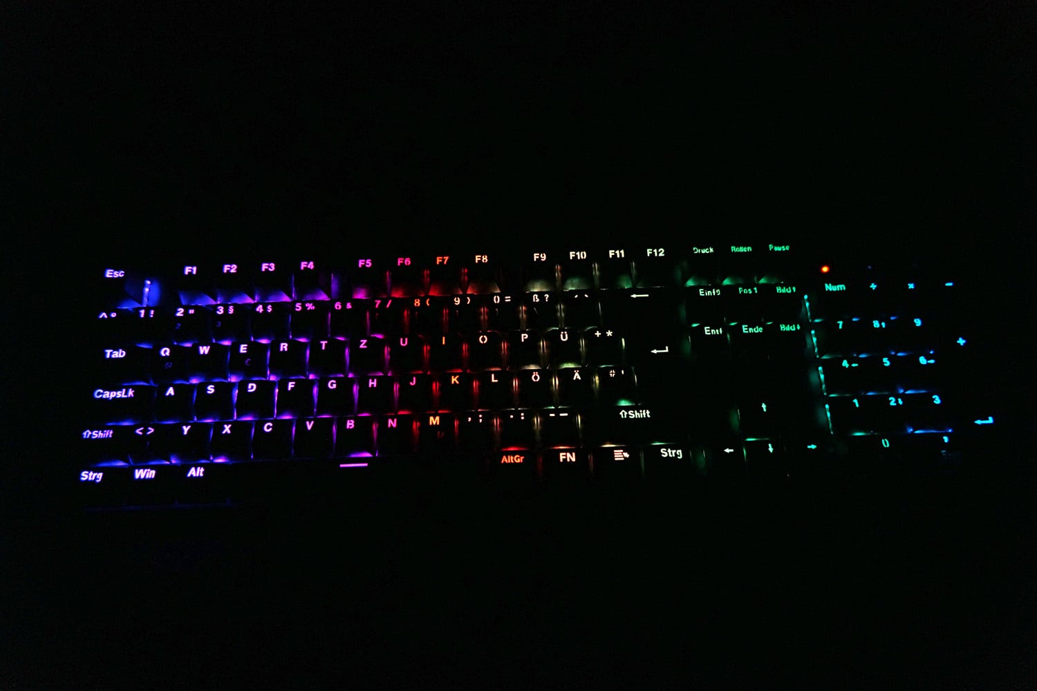 Unter jeder Taste der K565 verbirgt sich eine regelbare RGB-Leuchte. Hierdurch sind komplexe Farbverläufe und Animationen möglich, die sich über die Tastatur-Software auswählen und anpassen lassen.