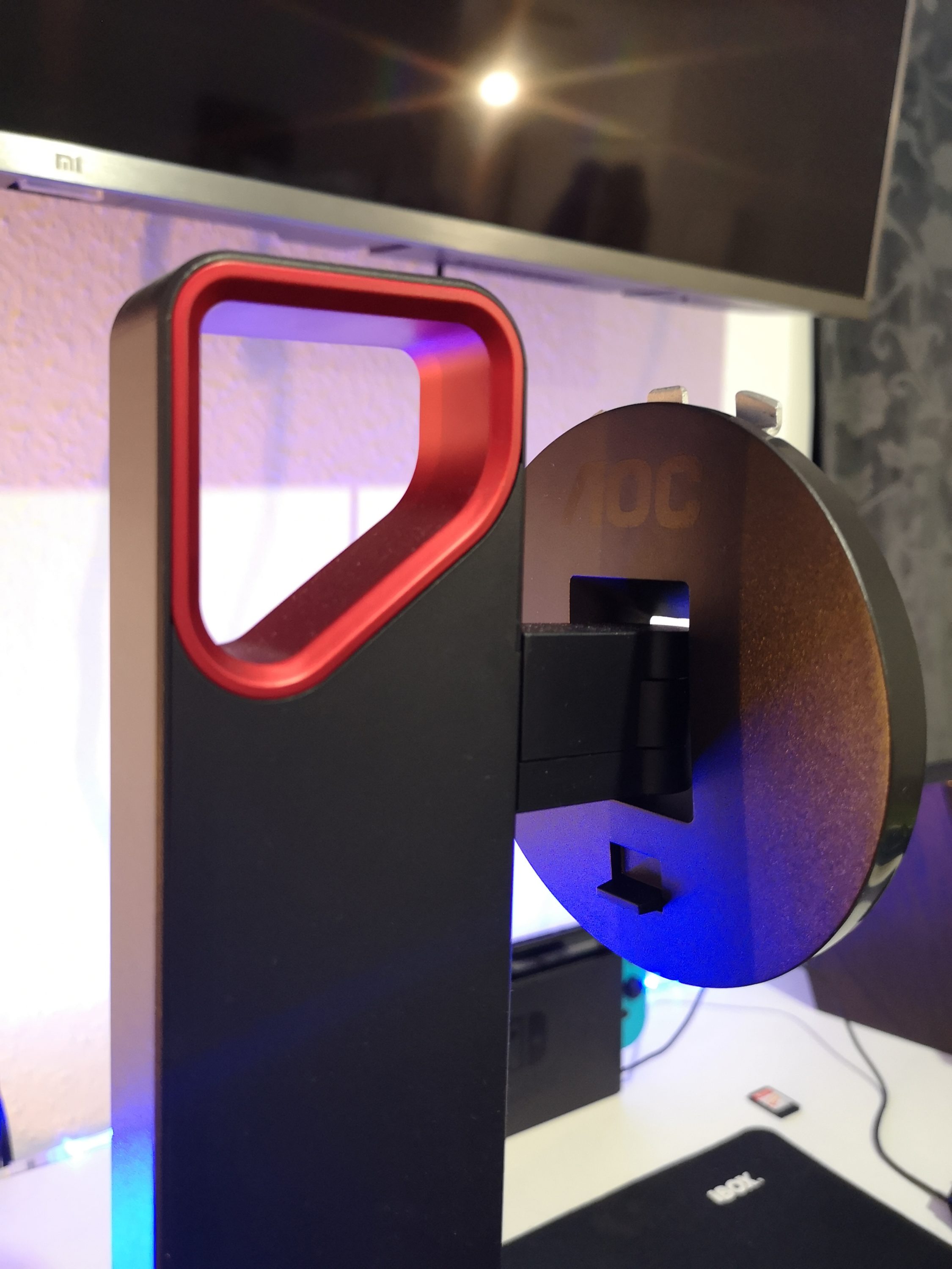 Die Montage gefällt mir sehr gut, da die Aufhängung des Panels äußerst einfach funktioniert und trotzdem stabil und sicher ist. Durch die verschiedenen Möglichkeiten den Bildschirm in der Höhe, sowie der Neigung anzupassen, kann ihn jeder für langandauernde Gaming-Sessions optimal einstellen. Allgemein wirkt die Verarbeitung des Geräts äußerst wertig und man hat nicht das Gefühl, dass Abstriche an der Qualität gemacht wurden.