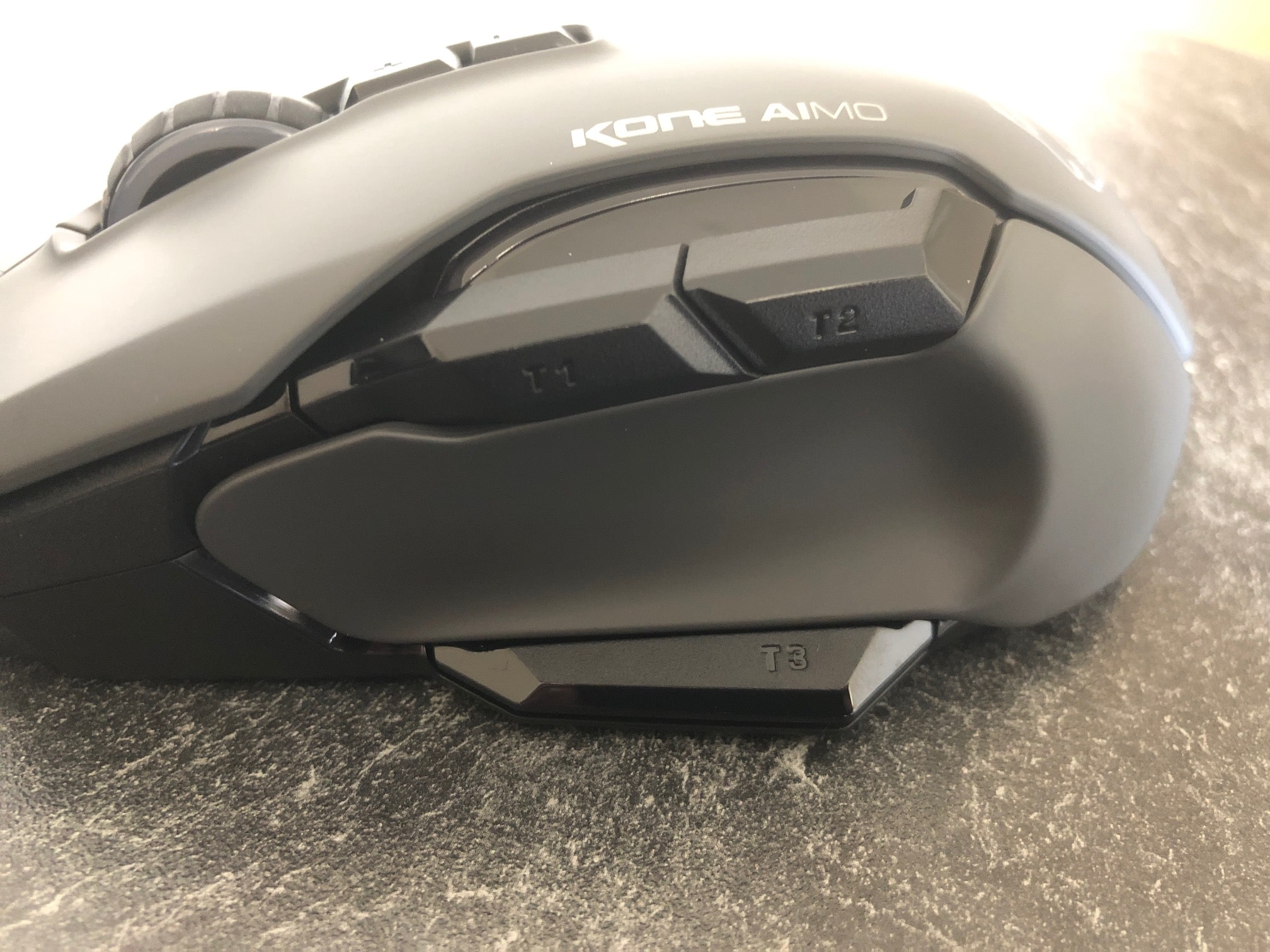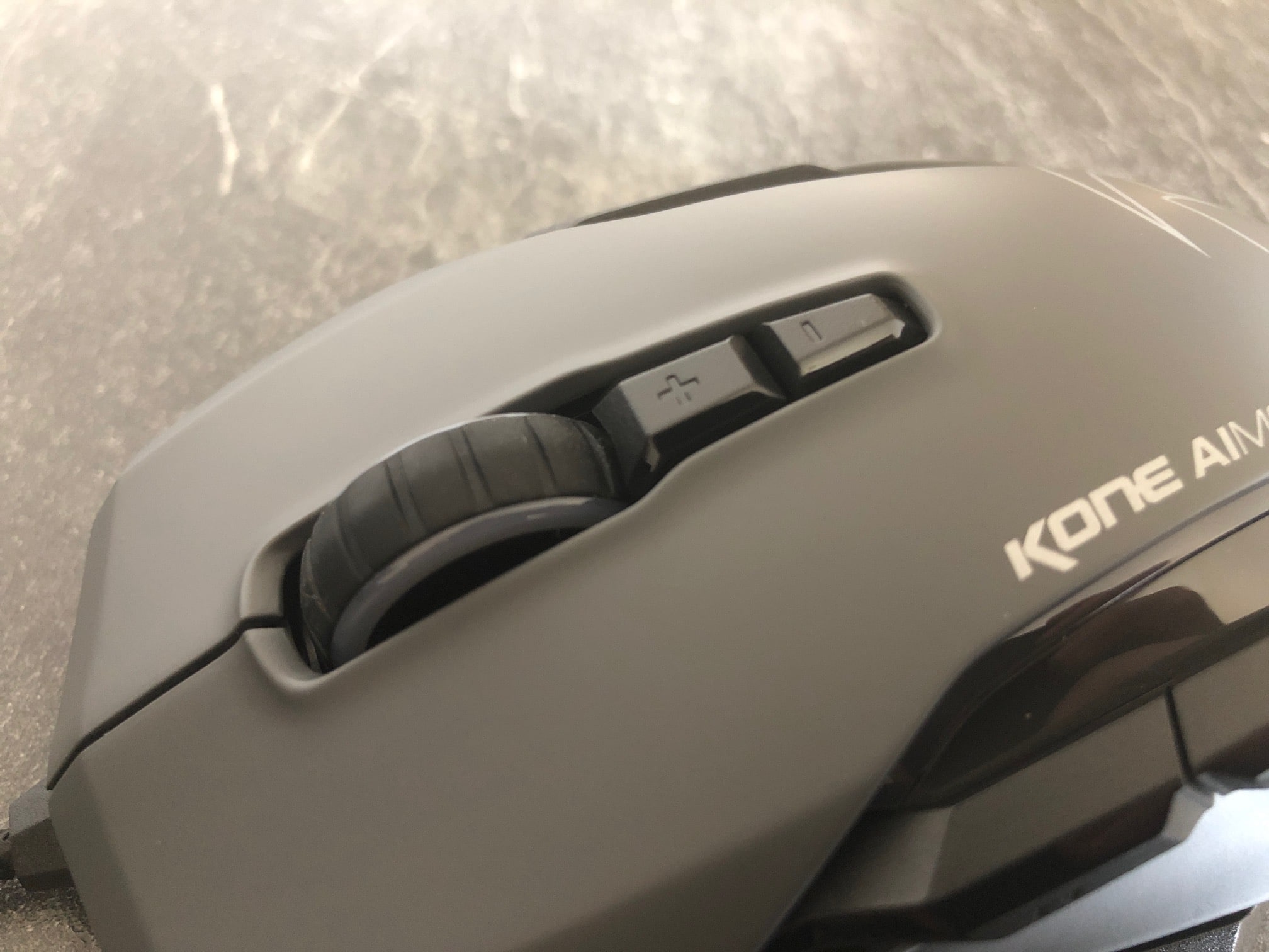 Insgesamt verfügt die Roccat Kone Aimo über acht Tasten. Zwei Hauptasten, zwei Tasten oben, drei Tasten links und ein Scrollrad. Dabei verfügen die Haupttasten selbstverständlich über hochwertige Omron-Switches, die für bis zu 50 Millionen Klicks ausgelegt sind. Alle Tasten sind sehr gut zu erreichen und leicht zu bedienen. Das Feedback bei einem Tastendruck ist zudem gut zu hören, aber auch nicht störend.