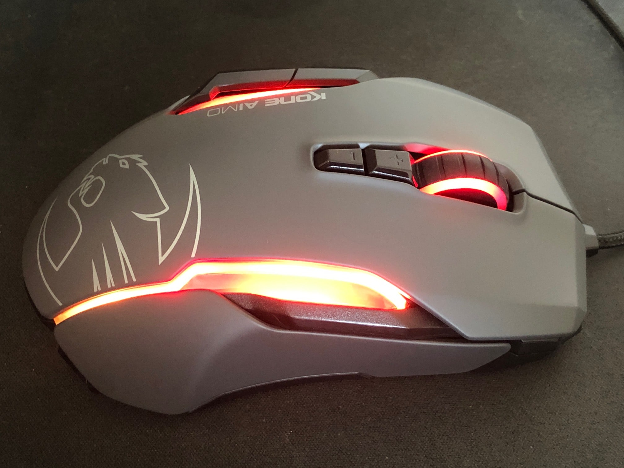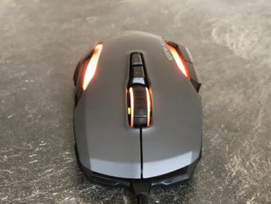 Wo man eventuell einen Punkt abziehen könnte ist das Gewicht. Mit einem Kampfgewicht von satten 130 Gramm ist die Kone Aimo doch recht schwer. Flexible Gewichte oder ein generell geringeres Gewicht wären hier wünschenswert gewesen, damit das Handgelenk auch bei längeren Gaming-Sessions nicht überstrapaziert wird. Jedoch wird das natürlich von jeder Person anders empfunden, weshalb die Maus mit ihrer Größe und ihrem Gewicht für einige Nutzer auch absolut perfekt sein kann.