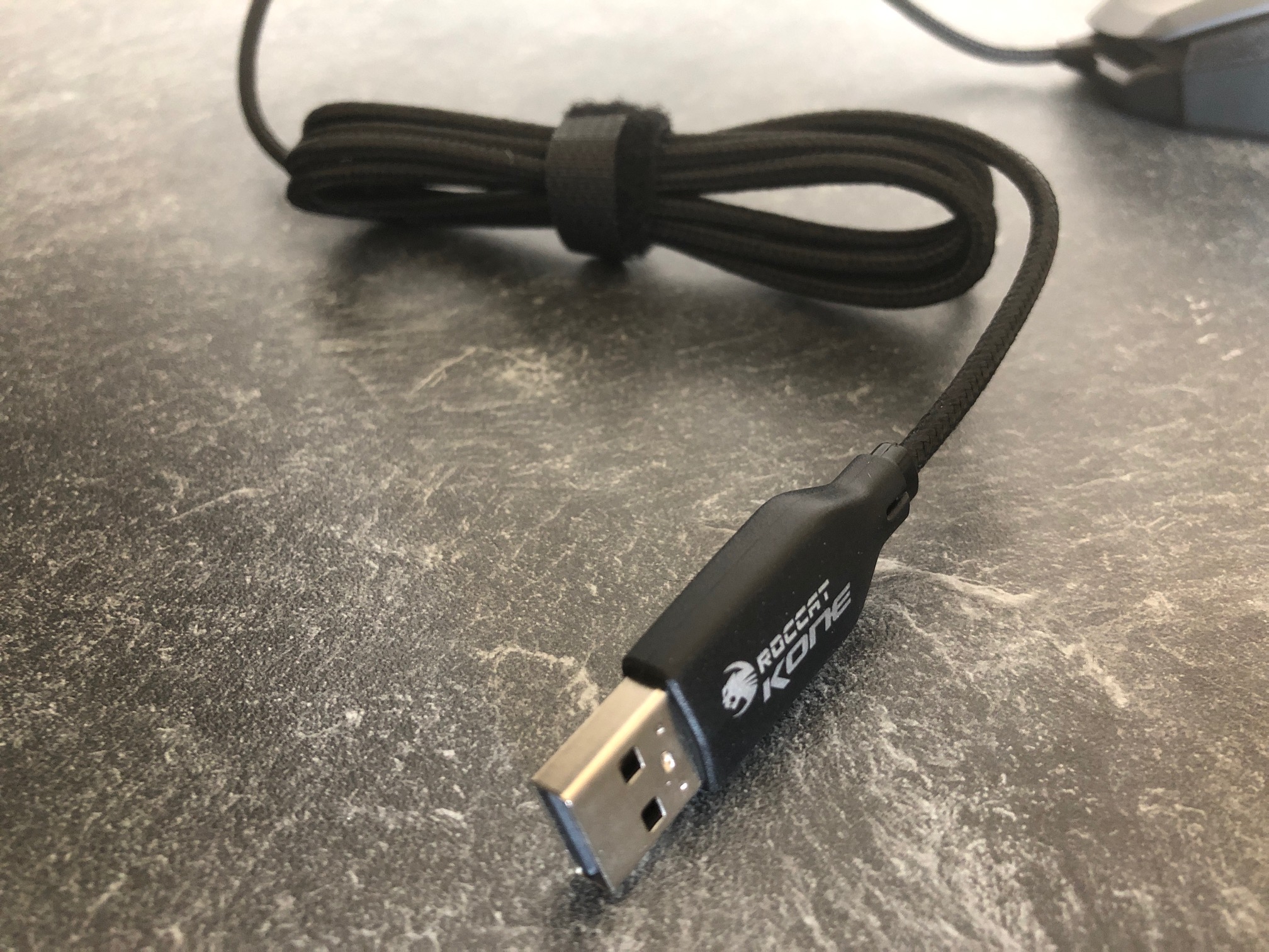 Ein textilummanteltes USB-Kabel mit einer Länge von 1,8 Metern gehört natürlich ebenfalls mit dazu. Das Kabel macht einen hochwertigen Eindruck, ist allerdings etwas steif und könnte gerne flexibler sein. Mit einem Maus-Bungee sollte es jedoch keine Probleme geben.