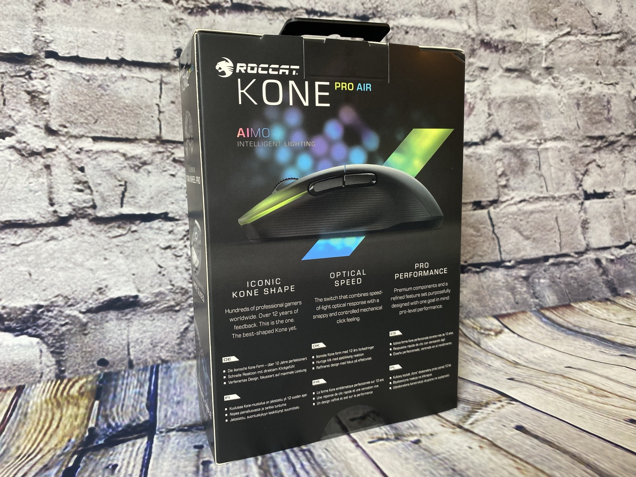 Innovation finden wir demnach auch in dieser Gaming-Maus wieder. Wie schon bei der Vulcan TKL Pro sind in dieser Maus optische Schalter eingebaut worden, welche abermals für eine schnellere Performance sorgen sollen – eine Neuheit, die wir so noch nicht oft gesehen haben und ROCCAT langsam zu ihrer eigenen macht. Gleichzeitig bleibt sich ROCCAT seinem aktuellen Design-Konzept bei der RGB-Beleuchtung treu. Wie gut sich die Kone Pro Air im Praxistest schlägt, erfahrt ihr nun.