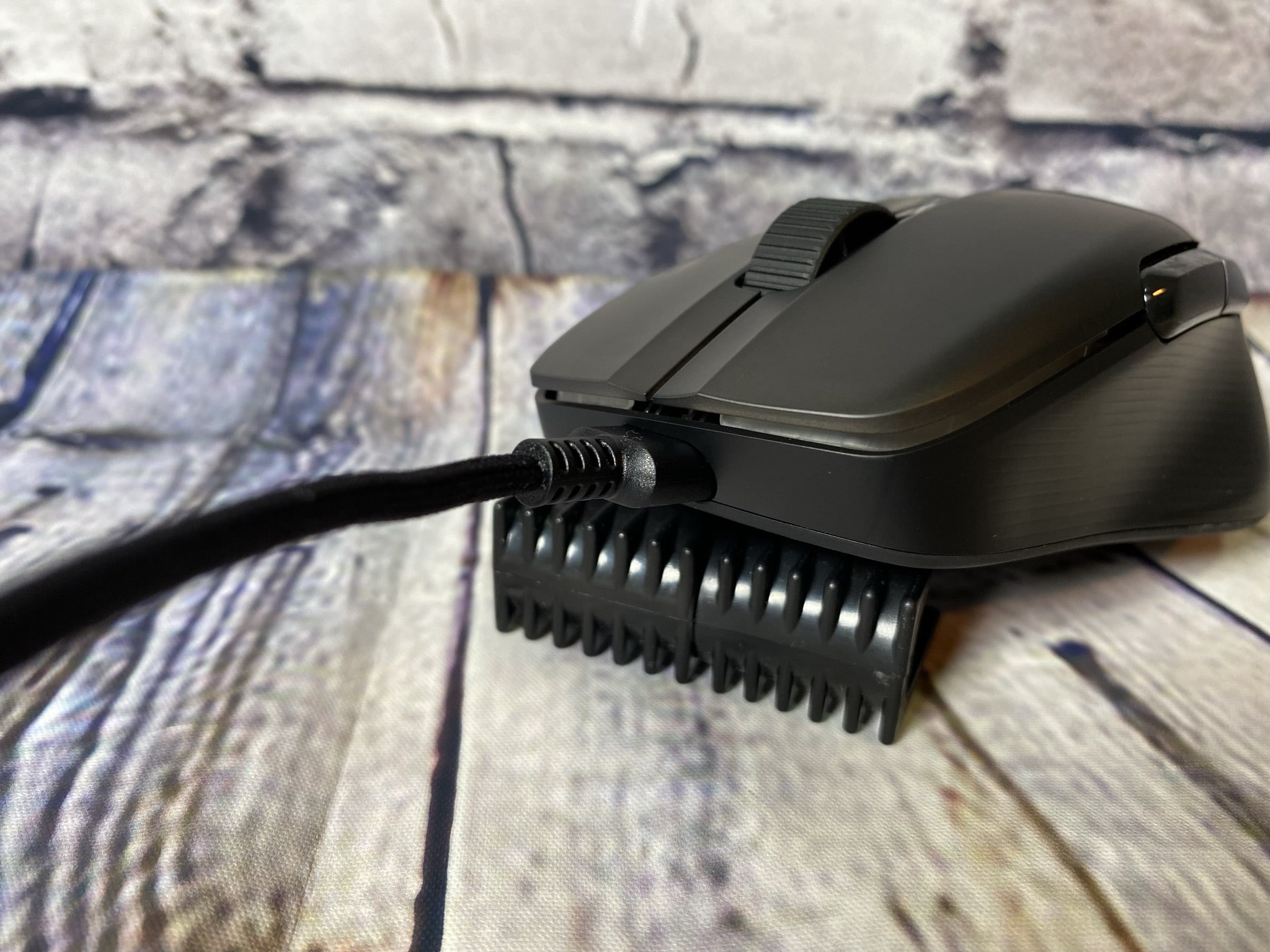 Zuletzt bietet die Kone Pro Air noch die Möglichkeit, sie im kabelgebundenen Betrieb zu nutzen. Hierfür steckt man das mitgelieferte USB-C-Kabel an der Oberseite in die Maus und verbindet das USB-A-Gegenstück mit dem Computer. Gleichzeitig wird so auch die Maus geladen – ROCCAT setzt bei der Kone Pro Air auf die Rapid Charge Schnellladetechnologie, welche die Maus schon nach 10 Minuten laden für 5 Stunden betriebsfähig macht. Insgesamt hat der Akku eine Laufzeit von bis zu 100 Stunden im Betrieb. Ob das der Wahrheit entspricht, erfahren wir erst in den folgenden Kapiteln. Abschließend zu diesem Kapitel, macht die Kone Pro Air einen sehr soliden und gelungenen Eindruck!