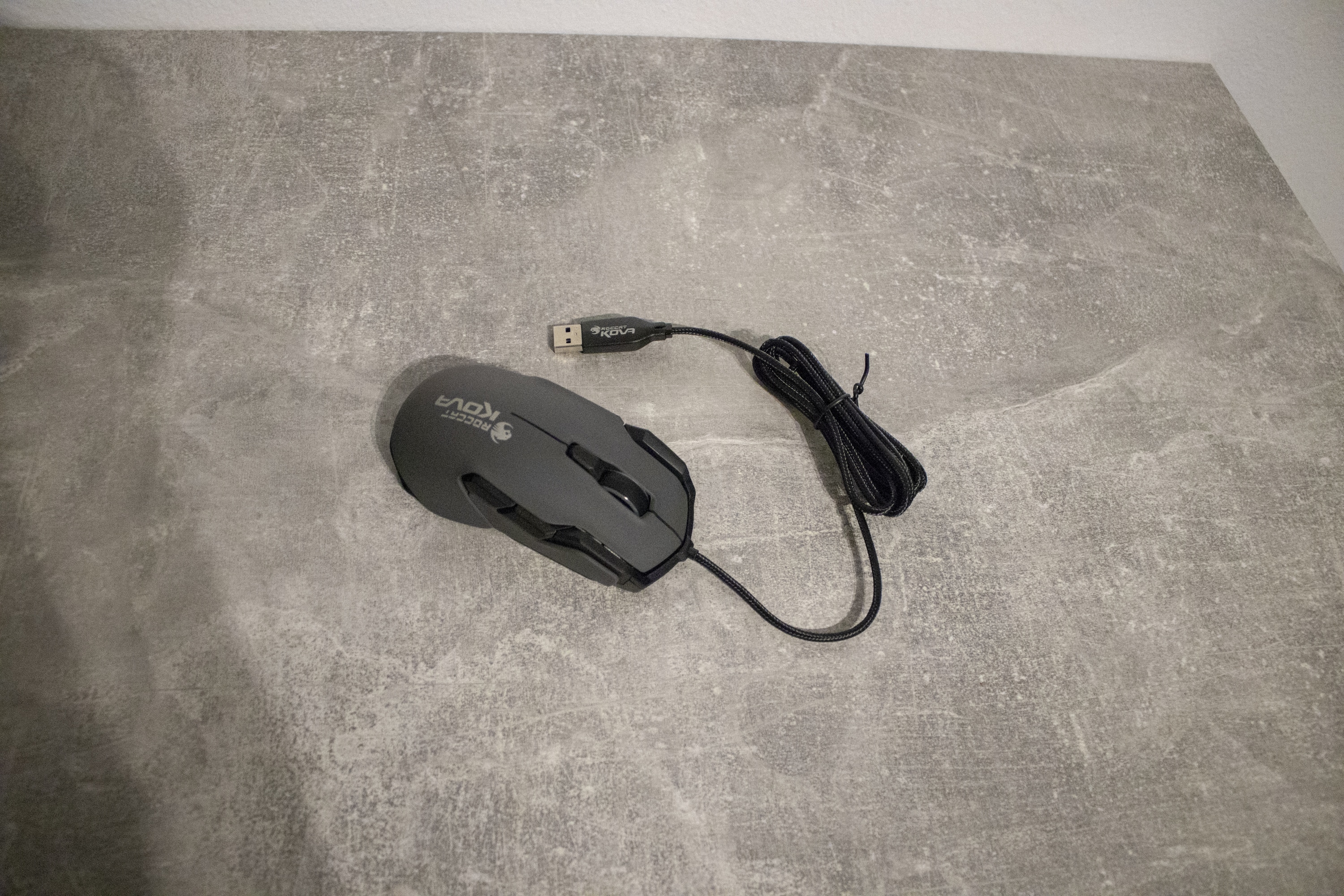Der Lieferumfang fällt, wie man es bei einer Gaming-Maus erwarten kann, sehr schlicht aus. Neben der ROCCAT Kova befindet sich noch eine Schnellstartanleitung in der Verpackung. Letztere fällt leider etwas größer aus als nötig gewesen wäre. Das 1,8 Meter lange und ummantelte Kabel ist zusammengefaltet und benötigt etwas Aufwand, um die „Knickspuren“ zu entfernen.