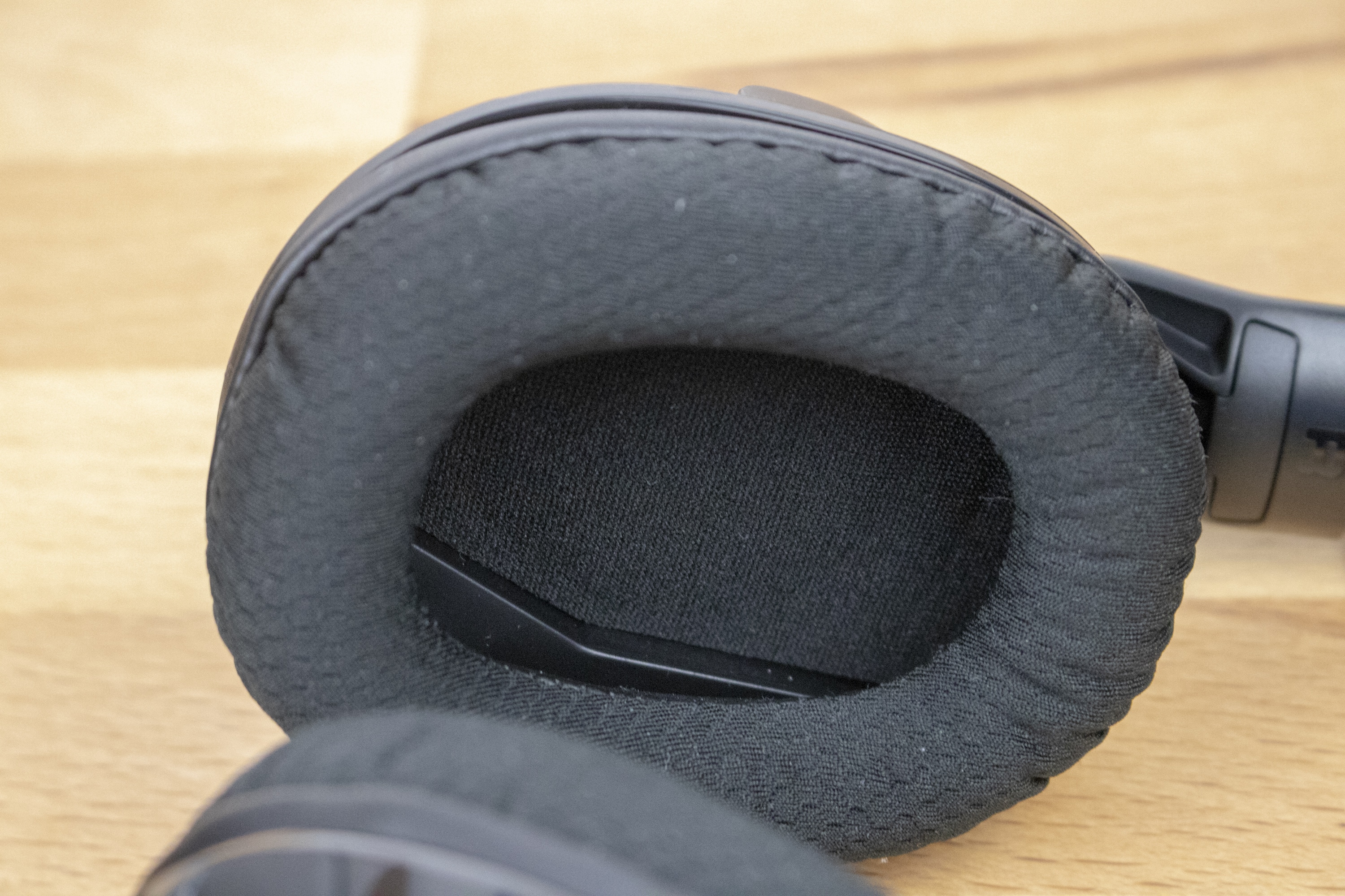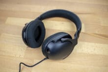 Das Mattschwarz des Headsets wird von Akzenten mit einem schwarzen Glanz leicht akzentuiert. Der Schriftzug mit dem Namen ist zudem sehr dezent auf der Verkleidung der Ohrmuschel aufgetragen. Die Polsterung am Kopfbügel und den Ohrmuscheln ist mit einem Stoffbezug überzogen, der sich sehr weich anfühlt.