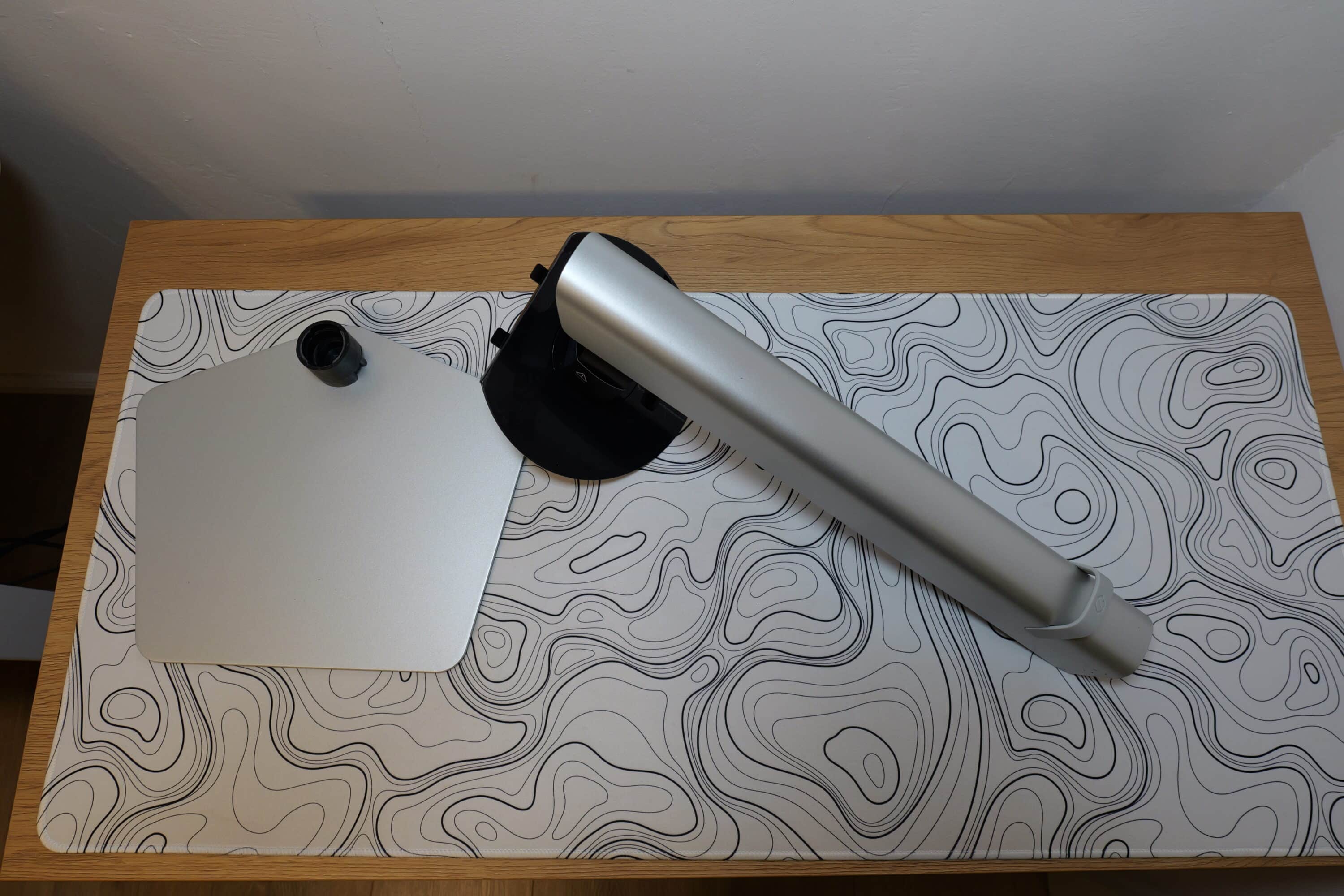 Besagter Standfuß ist angenehm flach und setzt auf ein fünfeckiges Design. Dabei bietet er nicht nur eine exzellente Stabilität, sondern auch genügend Platz, um beispielsweise Maus oder Gamepad darauf zu parken.