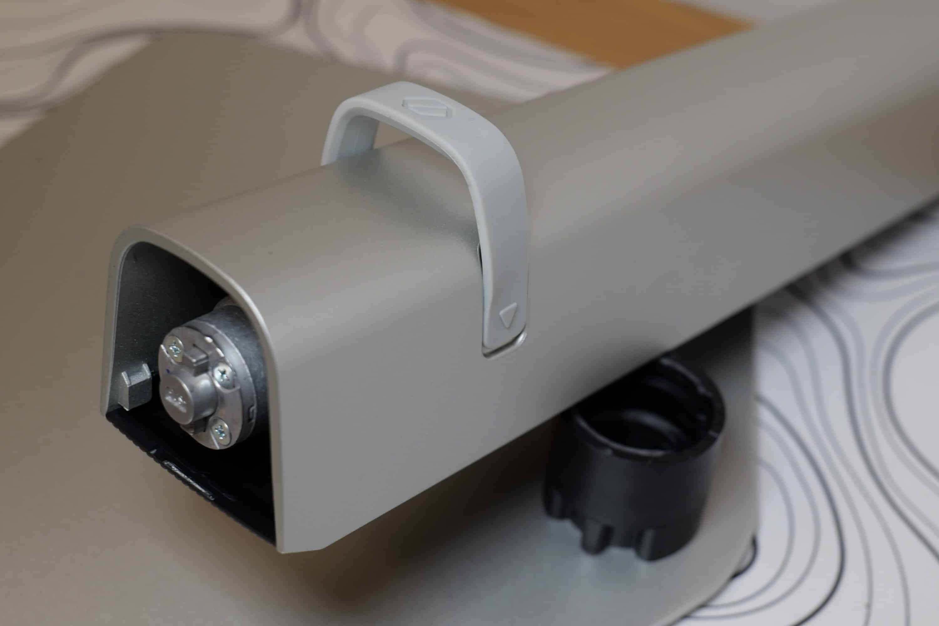 Besonders gut gefällt wir, welchen Kniff sich Samsung bei der Verbindung zwischen Halterung und Standfuß einfallen lassen hat: Die Montage klappt werkzeuglos – aber mit der Besonderheit, dass hier der Standfuß einfach in die Halterung eingedreht und eingesetzt wird. Ein Entfernen ist durch einfaches Drücken des entsprechenden Knopfes schnell und einfach möglich.