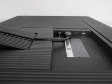 Wie bereits erwähnt hat Samsung den The Space Monitor auf das nötigste reduziert. Dies macht sich leider auch in den Anschlüssen bemerkbar. Neben einem HDMI-Anschluss (2.0) ist leider nur ein DisplayPort (1.2) vorhanden. Andere Monitore in dieser Preisklasse sind hier deutlich besser aufgestellt. Der auf der Rückseite vorhandene USB-Anschluss liefert lediglich Diagnosedaten, die Techniker im Falle eines Defekts auslesen können. Einen USB-Hub oder eine Lademöglichkeit für Tablets und Smartphones gibt es aufgrund des schmalen Rahmens nicht.