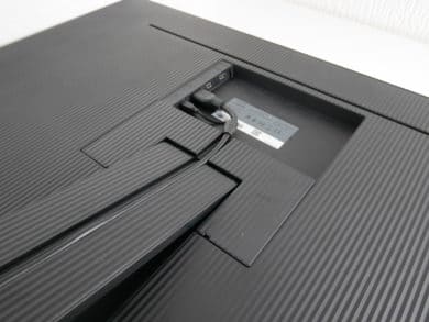 Im Lieferumfang befindet sich ein Kombi-Kabel, das nur einen der beiden Kabelkanäle der Halterung belegt und über das sowohl das HDMI-Signal als auch das externe Netzteil angeschlossen werden können. Ein DisplayPort-Kabel ist trotz des relativ hohen Kaufpreises nicht im Paket enthalten.