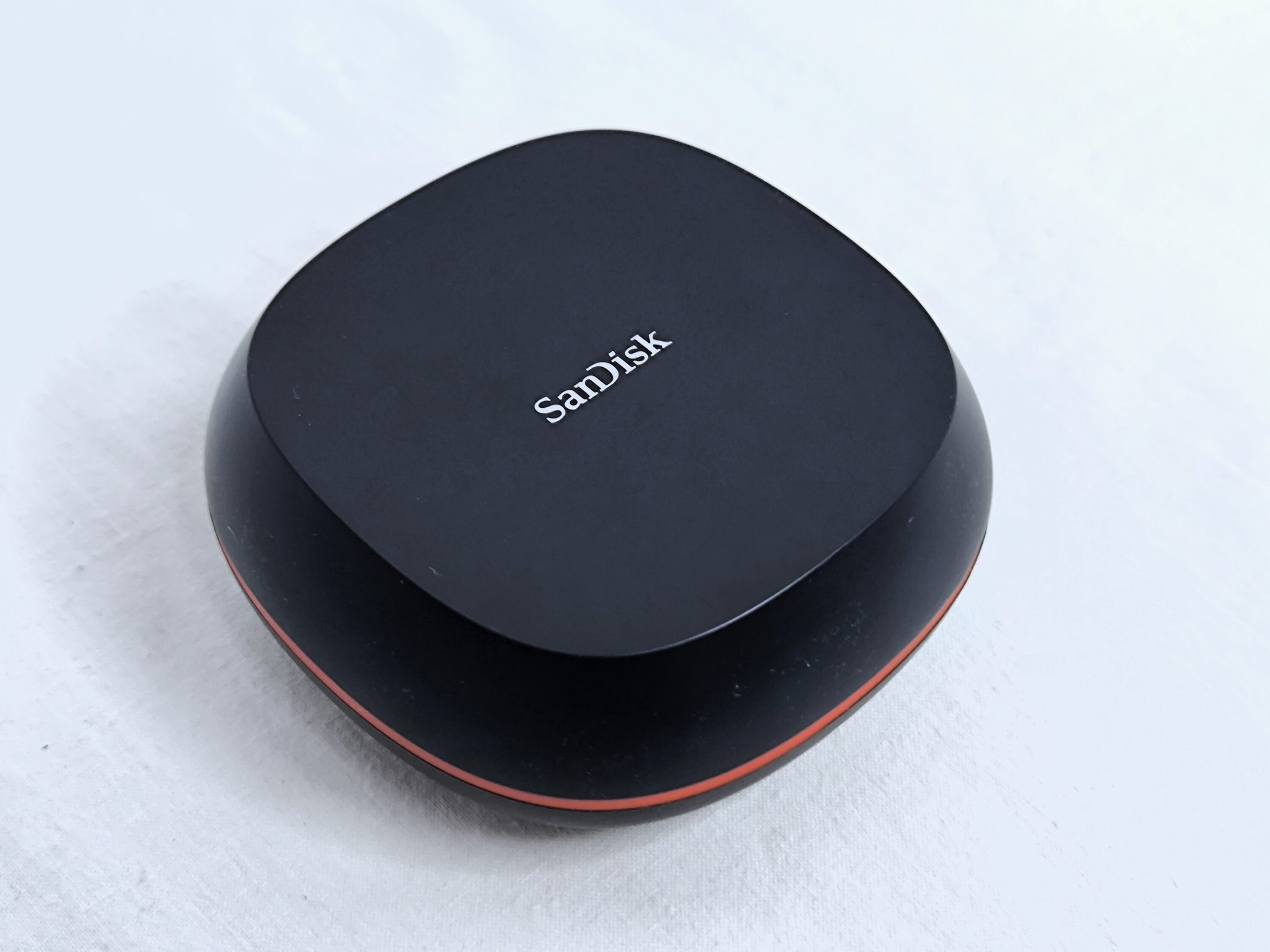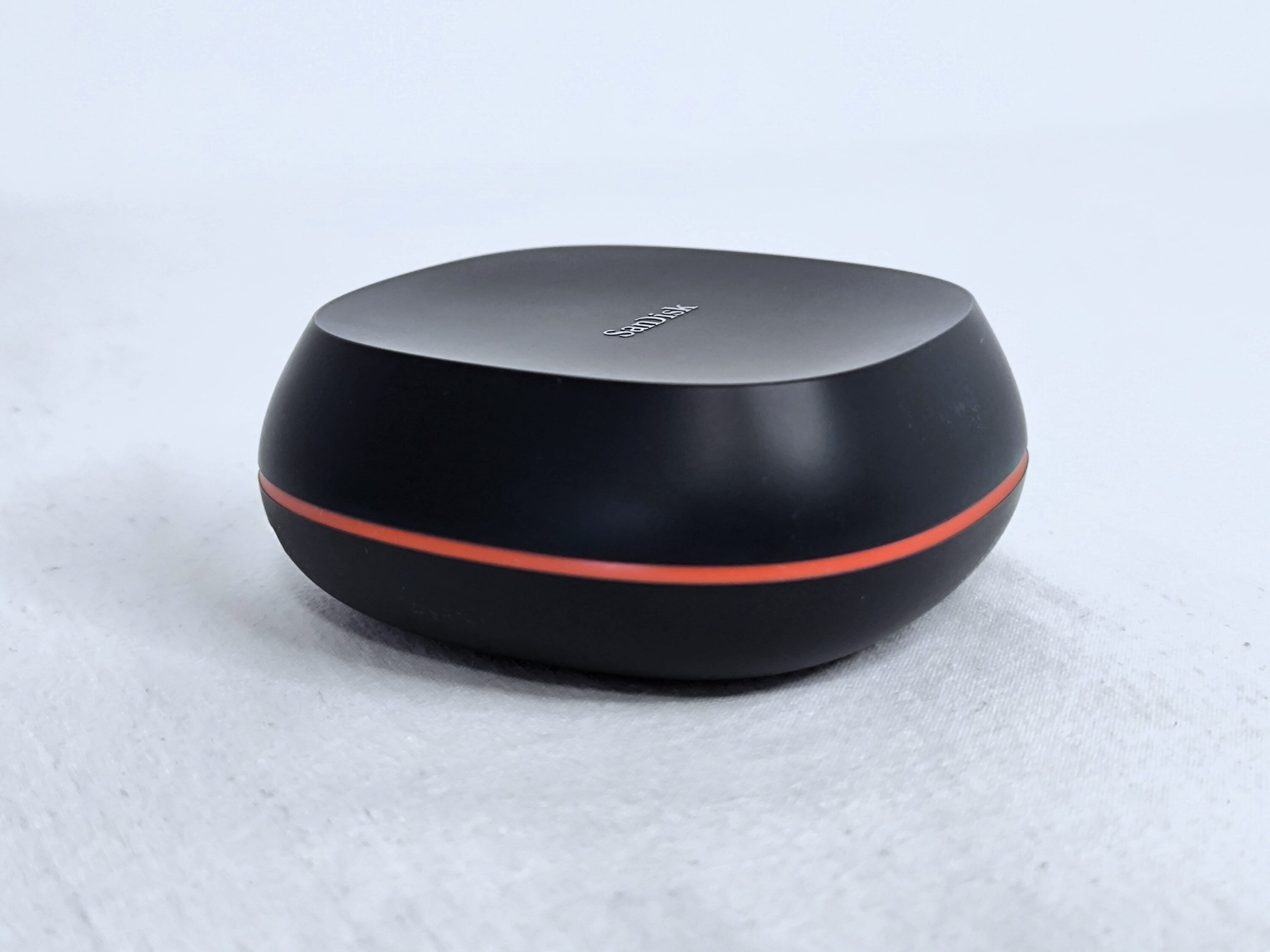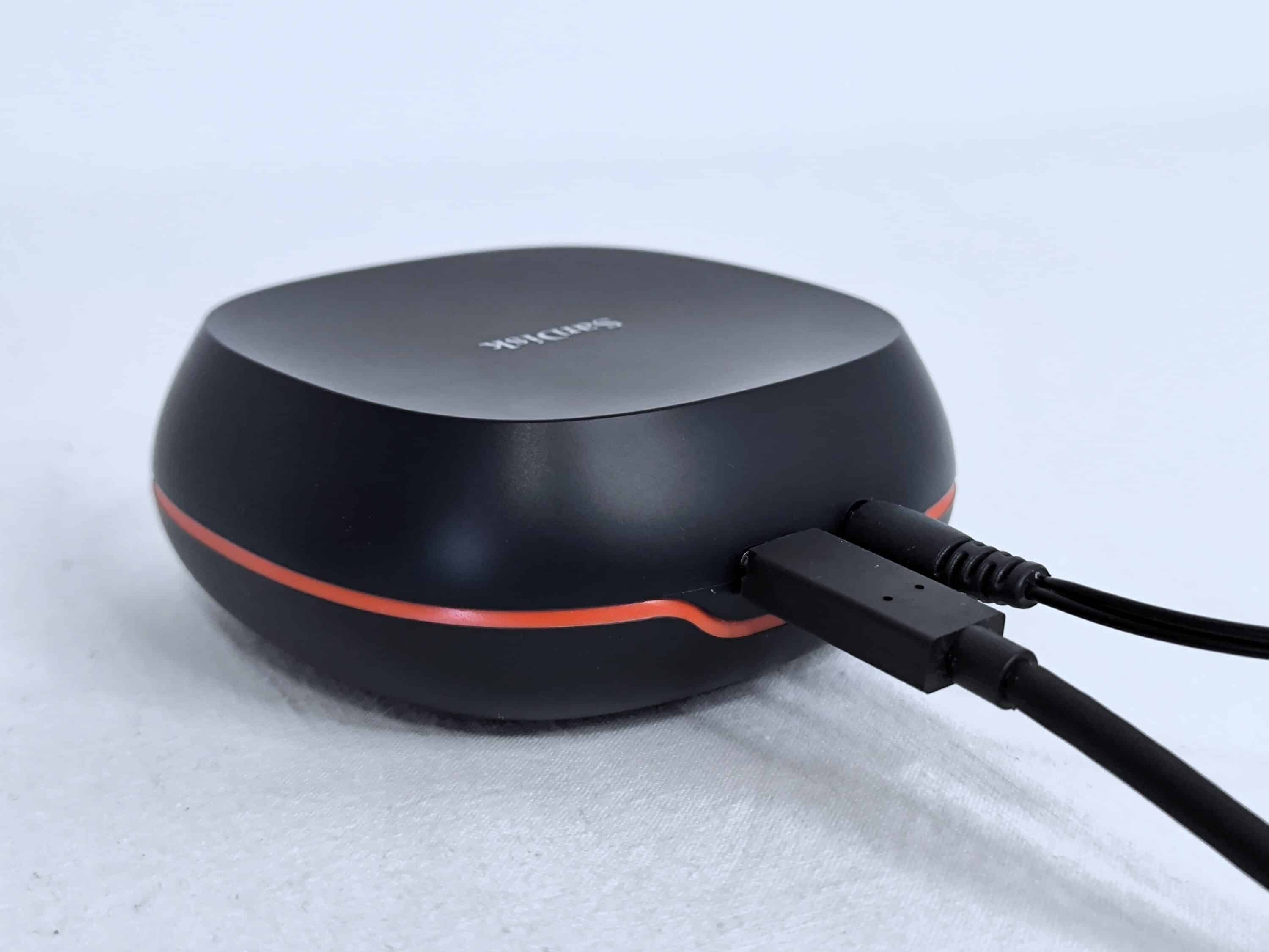 Die SanDisk Desk Drive ist als Ergänzung für Desktop-Workstations und als Alternative zu externen HDD-Festplatten gedacht. Vom Aussehen erinnert die San Desk Drive in erster Linie an einen Puck. Dabei ist sie etwas voluminöser gehalten, was man auch spürt, wenn man die SSD kurz hochhebt. Erwähnenswert ist in diesem Kontext zudem, dass die SSD über ein eigenes Netzteil verfügt, das neben dem USB-Anschluss permanent am Strom hängen muss. Insofern ist das Modell weniger für den portablen sondern vielmehr für den stationären Einsatz geeignet.