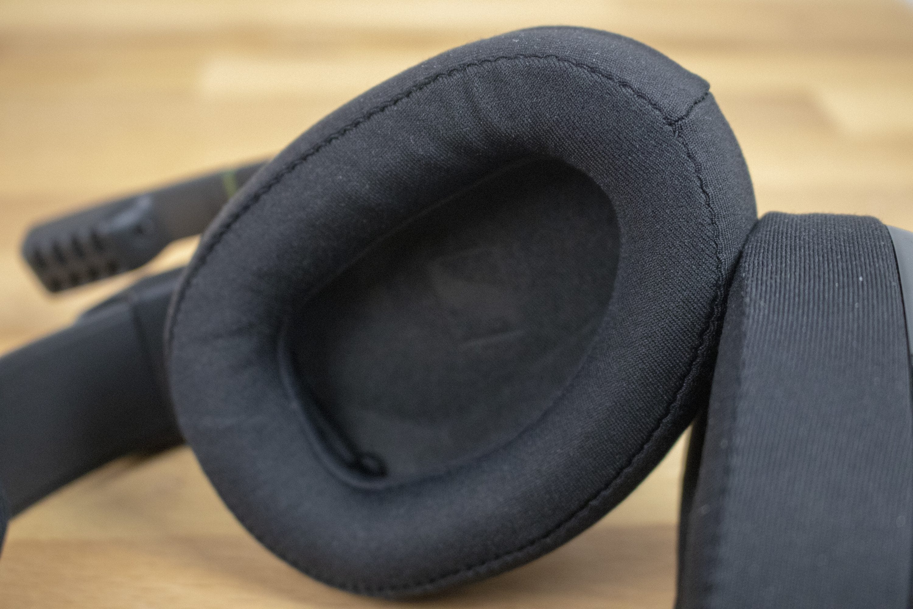 Auch die Ohrpolster konnten uns überzeugen. Sie sind überdurchschnittlich groß, was dazu führt, dass sie selbst bei wahrlich riesigen Ohren passen dürften. Die Polsterung ist straff, ohne unangenehm zu drücken. Der eingangs bereits erwähnte Gelenkmechanismus, der aus Aluminium gegossen wurde, sorgt zudem für weitere Einstellmöglichkeiten. Im Test konnte er uns überzeugen. Soll das Headset sehr straff sitzen, lässt sich das problemlos bewerkstelligen. Auch wer es eher locker mag, findet schnell eine passende Einstellung. Brillenträger profitieren ganz besonders von den sehr offenen Einstellmöglichkeiten.
