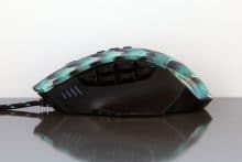 Tendenziell eher weniger geeignet ist die Maus allerdings für Spieler mit kleinen Händen. Die Drakonia II gehört zu den größeren Mäusen. Man erreicht zwar die seitlichen Tasten alle mit dem Daumen, aber ganz optimal ist das nicht. Auch das schnelle Durchschalten der DPI mit den standardmäßigen mittleren Tasten könnte, je nachdem wie man die Maus greift, etwas unbequem sein.