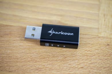 Genutzt werden kann der USB-Wandler im Übrigen ohne jedes Problem: Er wird einfach in die USB-Buchse des Ausgabegeräts gesteckt und dann per Klinken- oder TRRS-Stecker mit dem Headset verbunden. Nach dem Einstecken kann er sofort – ohne weitere Maßnahmen – verwendet werden. Die absolut simplen Verbindungsmöglichkeiten und die Funktionalität nach dem Plug-and-Play-Konzept dürften Gamern, die häufig auf Turnieren oder LAN-Partys anzutreffen sind, entgegenkommen. Sharkoon beweist damit, die Bedürfnisse seiner Zielgruppe zu kennen und auf sie eingehen zu können. Wir möchten die unkomplizierte Verwendbarkeit daher als eines der zentralen Merkmale des Gaming DAC Pro S hervorheben und in den Vordergrund stellen.