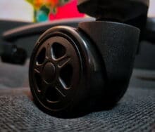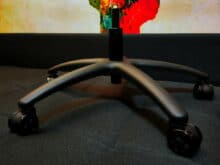 Selbst die Bodengruppe des Sharkoon SKILLER SGS20 ist gut durchdacht und wertig. Angefangen bei den gebremsten 60-mm-Sicherheitsdoppelrollen, die im Vergleich zum Rest der Bodengruppe – Achtung, Jammern auf allerhöchstem Niveau! – tatsächlich nicht ganz zur Crème de la Crème gehören, über das massive Sternkreuz aus Stahl bis hin zur Gasdruckfeder der Klasse 4 (Maximalbelastung laut Hersteller 120 kg) gibt es absolut nichts auszusetzen.