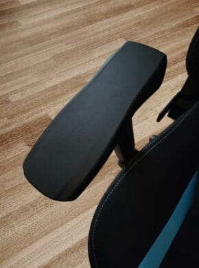 Die bereits vormontierten Armlehnen lassen sich in 3 Richtungen verstellen: hoch und runter, vor und zurück sowie seitlich stufenweise nach innen und außen wegklappen. Die Mechanismen sind relativ leichtgängig, aber trotzdem fest, so brauchst du keine Sorge haben, wenn es im Gefecht mal heiß hergeht, dass diese sich im entscheidenden Moment verstellen. Hoch und runter geht sowieso nur dann, wenn du den kleinen Hebelmechanismus nutzt. Dafür ziehst du den kleinen Hebel einfach nach oben. Dadurch löst sich die Blockade und du kannst zwischen 7 verschiedenen Höhen (Einrastpunkte) wählen. Ansonsten bestehen die Armlehnen aus einem stabilen, aber geschmeidigem Kunststoffmaterial, sodass du deine Arme komfortabel auf der Softtouch-Oberfläche ablegen kannst.