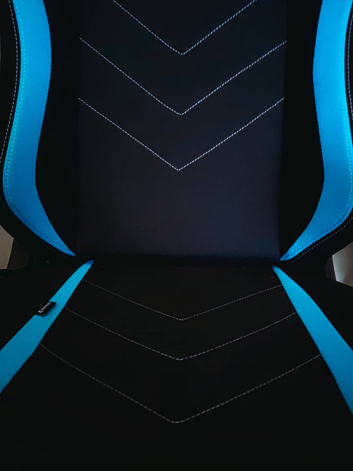 Apropos Optik, die Stütze ist mit dem Schriftzug SKILLER, dem Namen der Serie des Modells versehen und auf dem Kopfkissen prangt die Haiflosse, das Logo des Herstellers. Beide Elemente wurden hochwertig gestickt. Genauso wie alle anderen Stickereien, die sich auf der Sitzschale befinden, wie eine weitere Haiflosse auf Höhe des Kopfkissens, der Sharkoon-Schriftzug daneben, der Modellname in der Mitte der Rückenlehne und der Schriftzug inklusive Logo auf der Rückseite. Das sportliche Duo-Tone-Design des Gaming-Stuhls wird durch leicht erhöhte Seitenwangen, angedeutete Schulterschalen und v-förmig verlaufende, parallel gestickte Ziernähte abgerundet.